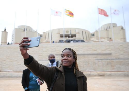 ▲6月29日,在津巴布韦汉普登山新城,一名女子在新议会大厦前留影。中国在南部非洲的最大援建项目津巴布韦新议会大厦29日举行媒体开放日,施工方宣布项目已竣工并通过验收,建成后成为当地的地标性建筑。 本栏均据新华社