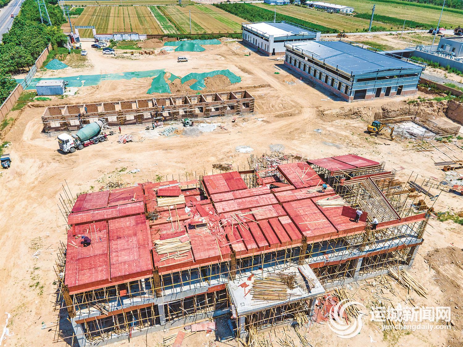 烈日炎炎,在临猗县牛杜镇牛杜村一角的项目建设现场,工人的汗水沿着安全帽系带滴下。在大家的不懈努力下,两排整齐的中药制剂车间已经初具规模,车间旁边的一座综合楼的框架外形也已经搭建完成。