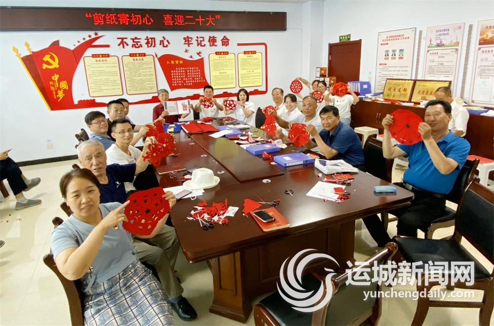 运城晚报讯(记者 郝丽莎)7月1日,盐湖区东城街道金鑫社区组织辖区部分党员、群众,开展“剪纸寄初心 喜迎二十大”主题活动,用剪纸艺术表达对党的祝福(上图)。