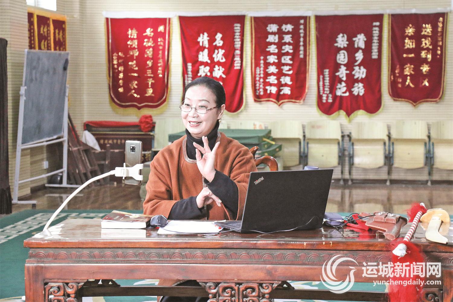 贾菊兰给人民路小学学生介绍蒲剧功法