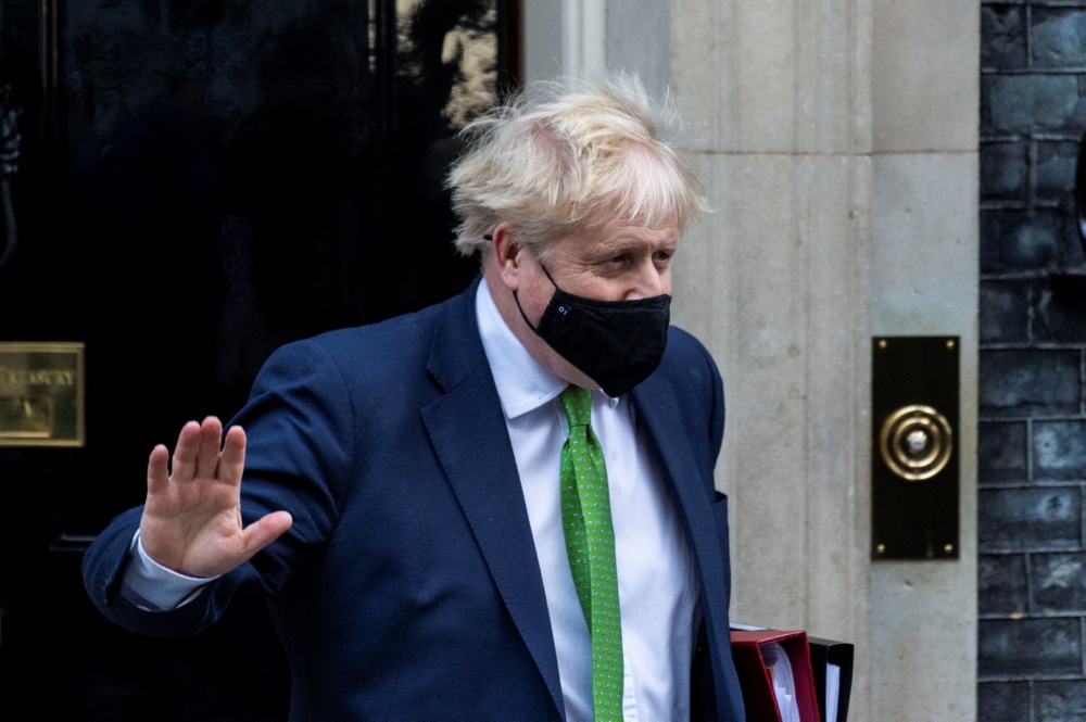 英国首相约翰逊7日宣布辞去执政党保守党党首和首相职务,但将留任首相至新领导人产生。 这是2022年1月19日英国首相约翰逊离开伦敦唐宁街10号首相府的资料照片。新华社发