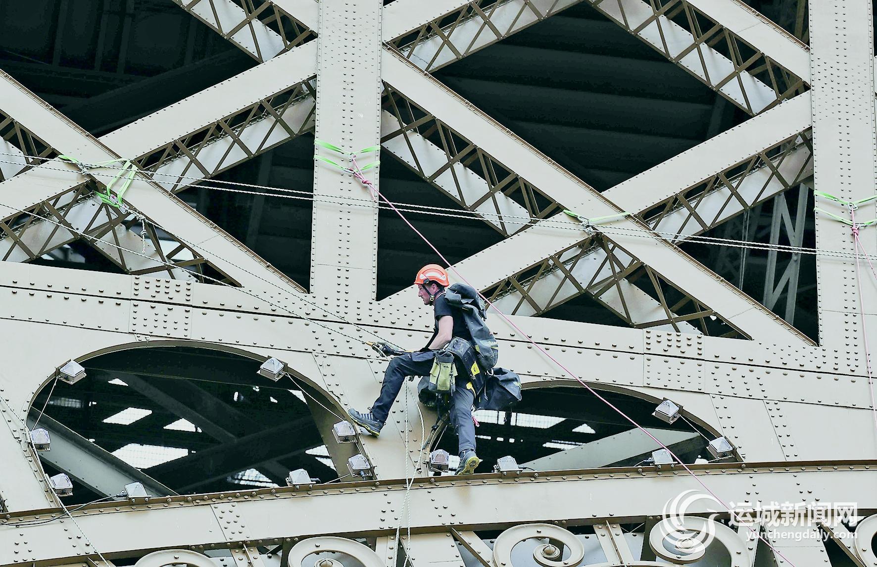 ▲7月7日,工人在法国巴黎埃菲尔铁塔上高空作业。法国周刊《玛丽安娜》获得的多份机密报告显示,巴黎埃菲尔铁塔锈迹斑斑,需要全面维修,但管理机构将只给5%的塔身重新上漆,令专家为这座法国地标建筑的状况担忧。