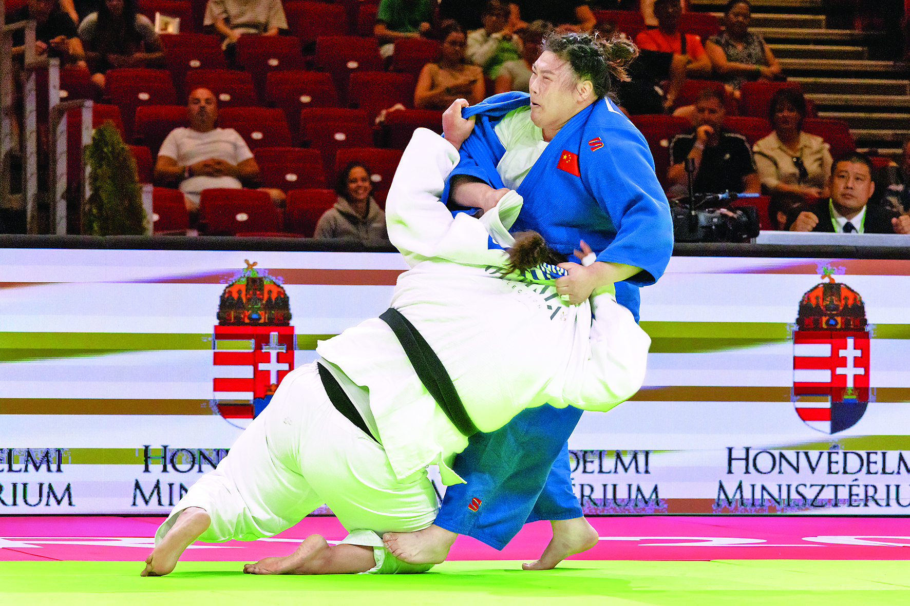 当日,在布达佩斯举行的国际柔联匈牙利大满贯赛女子78公斤以上级铜牌战中,中国选手宿欣战胜突尼斯选手谢赫。新华社发