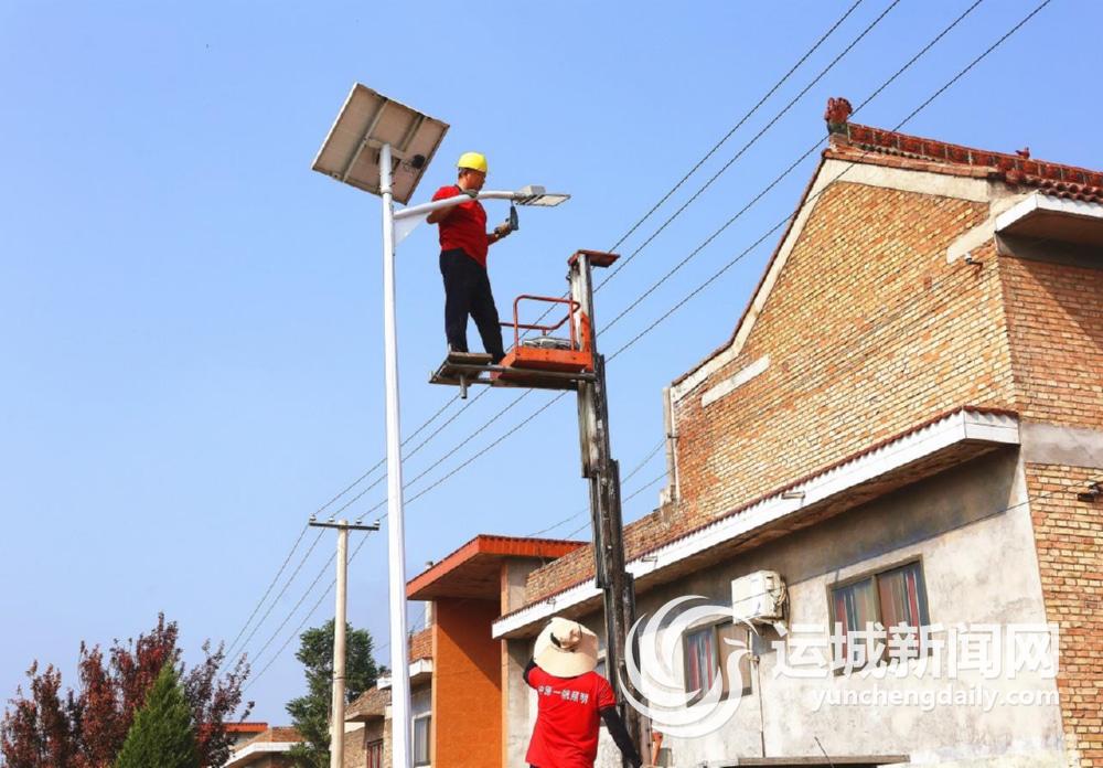 7月11日,工人在夏县南大里乡赵村进行路灯安装作业。 今年,南大里乡党委、政府在抓党建促基层治理能力提升专项行动中,把环境整治、扮亮乡村作为一项重要内容。赵村村“两委”结合实际,对全村8条巷道树木进行修剪刷白、清理下水道积污,同时,对年久失修的48盏路灯更新,使小山村的夜晚更加明亮,方便群众生活和出行。