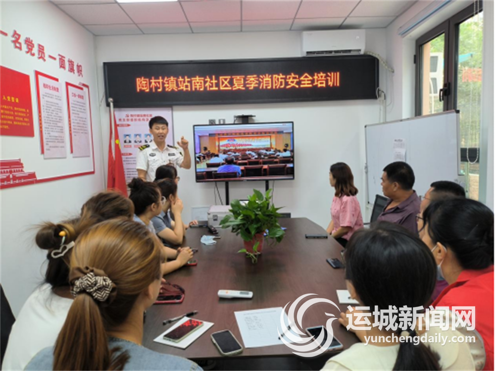 运城晚报讯(记者 李爽)为进一步普及消防安全知识、增强辖区居民的消防责任感、提高居民预防火灾及火场逃生自救能力,7月11日下午,盐湖区陶村镇站南社区邀请宣安防火服务中心教官李泊对社区工作人员、网格员和居民进行消防安全知识培训。