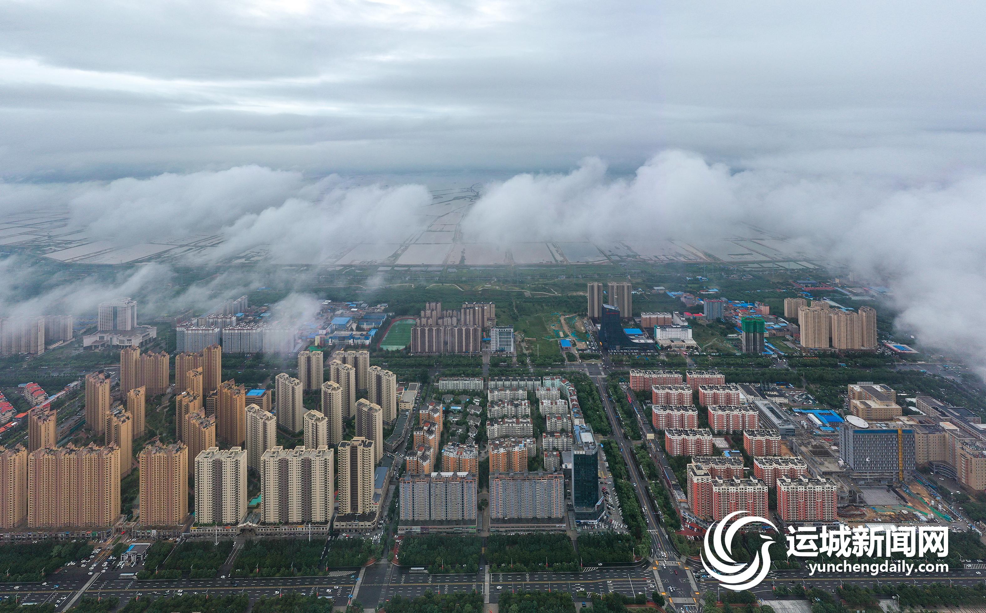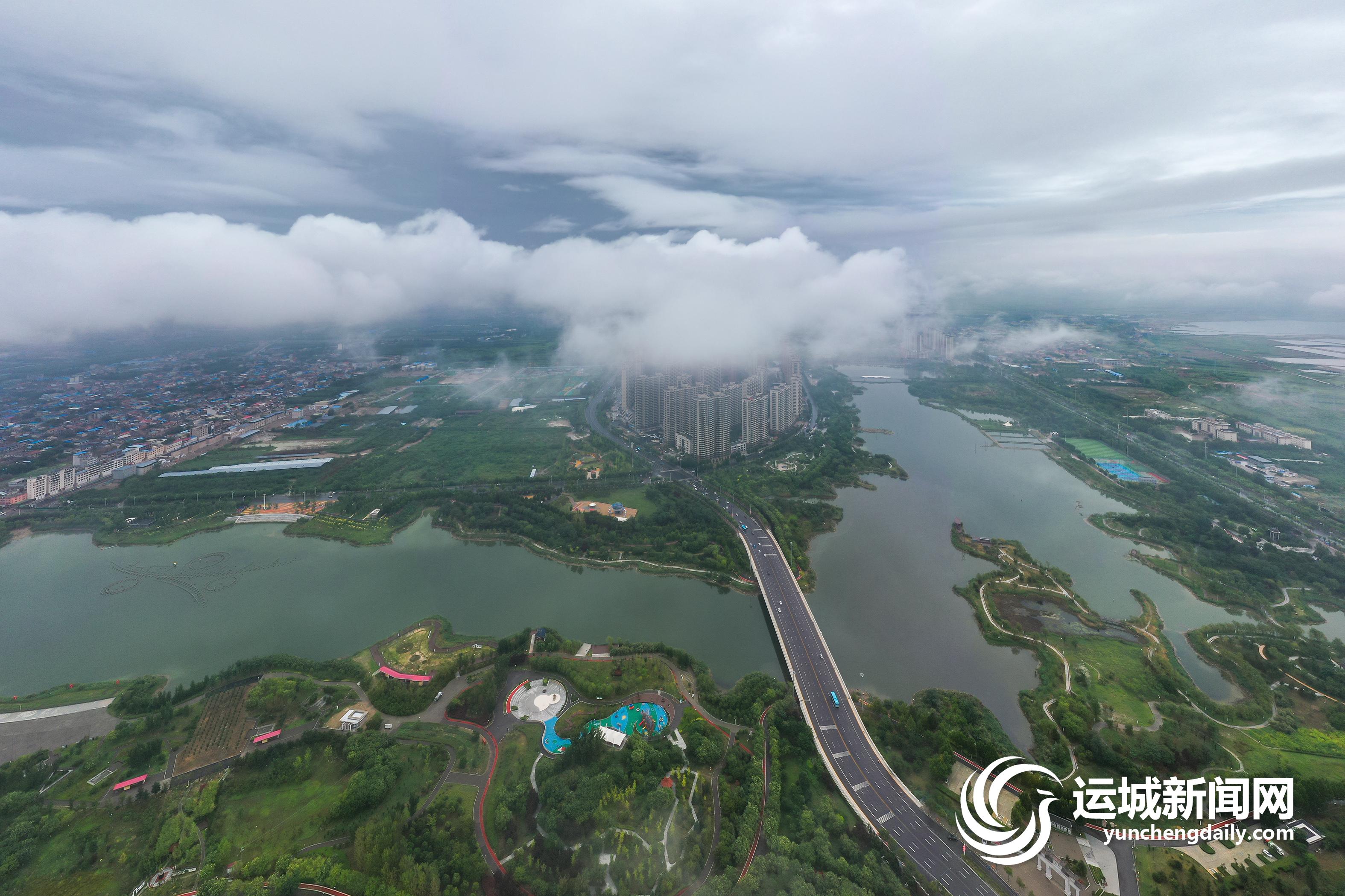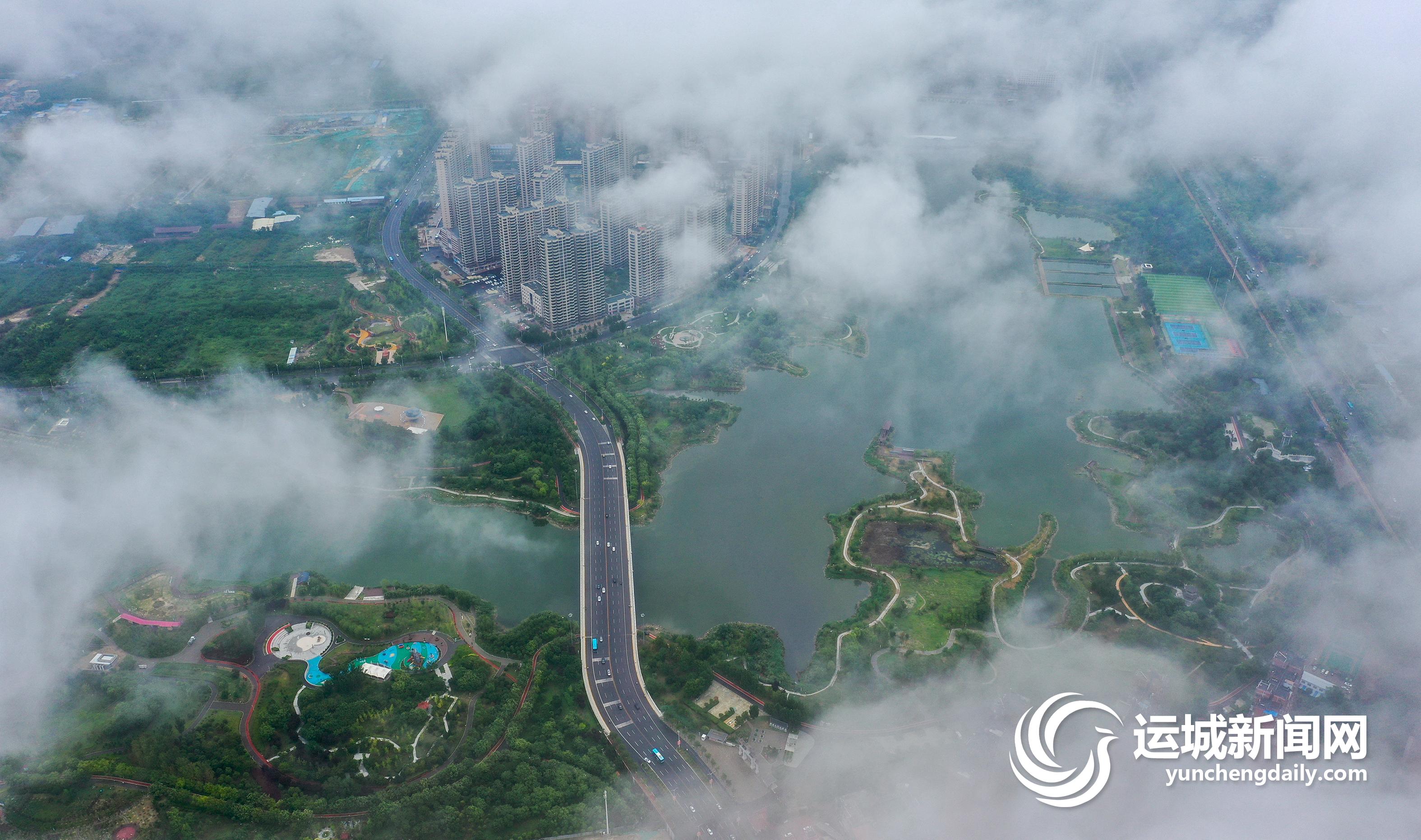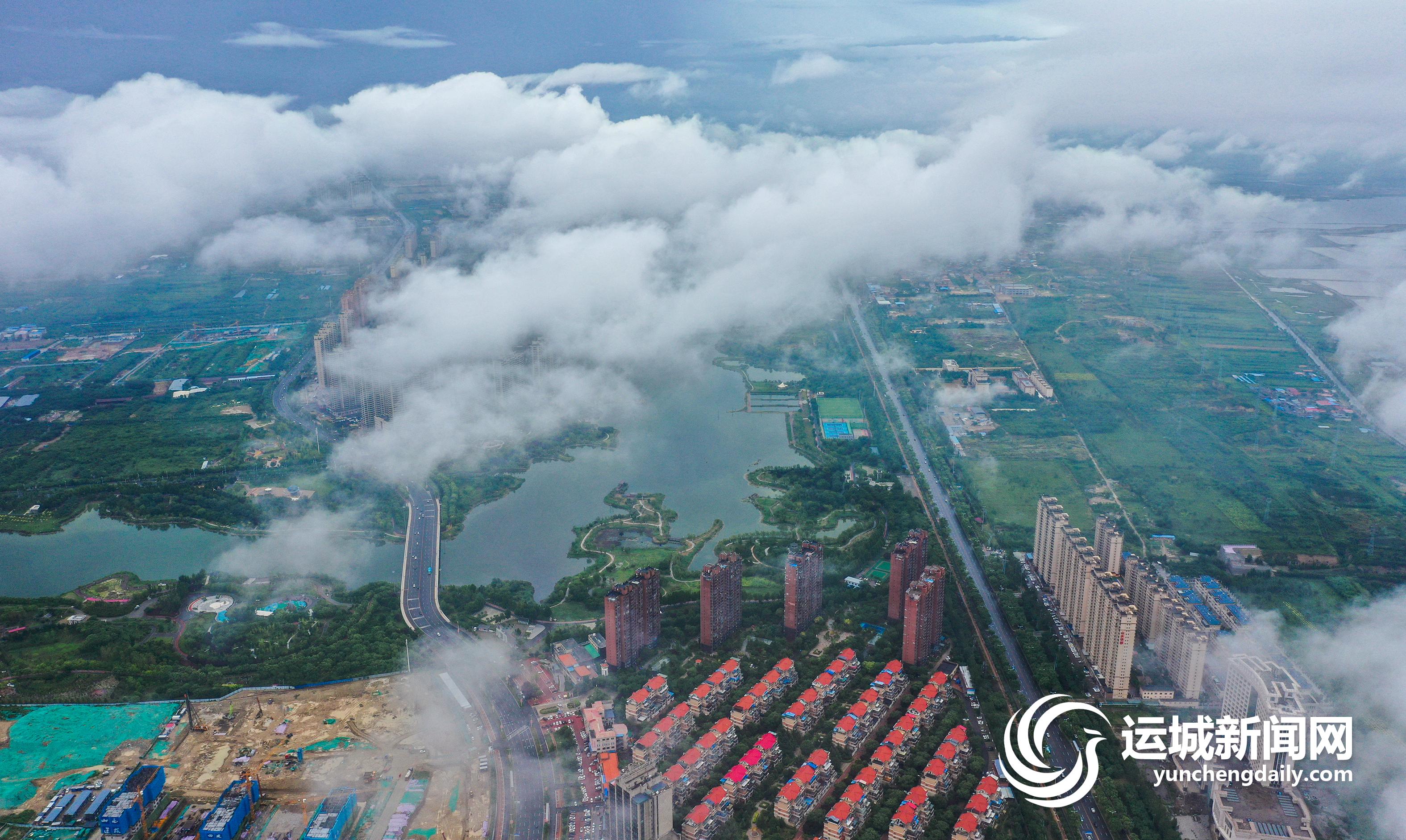 一场大雨过后,2022年7月13日上午,我市中心城区茂密的绿化,整齐的建筑群,碧绿的水系,在低空云海的映衬下,景色秀美,犹如人间仙境。 记者 金玉敏 摄影报道
