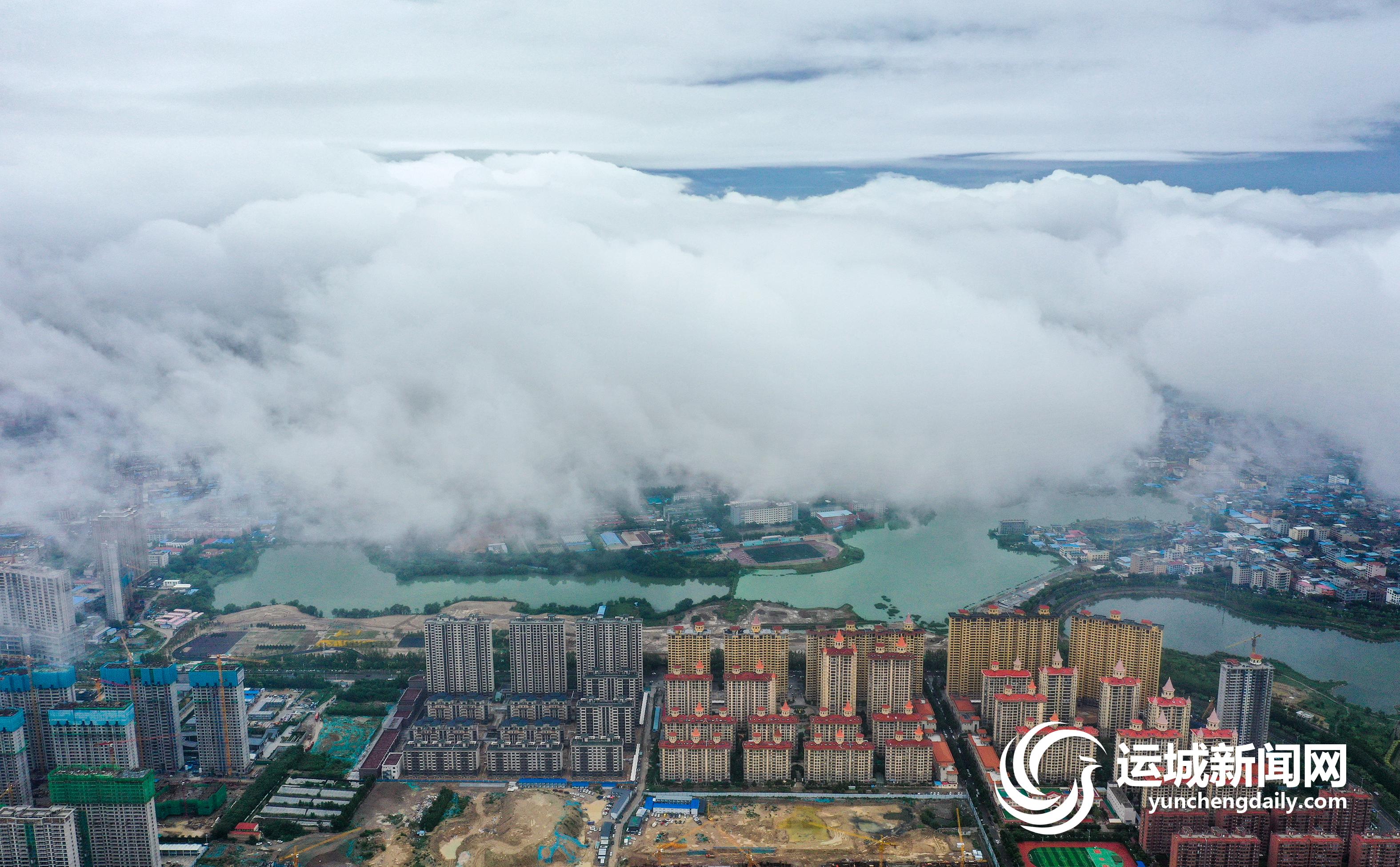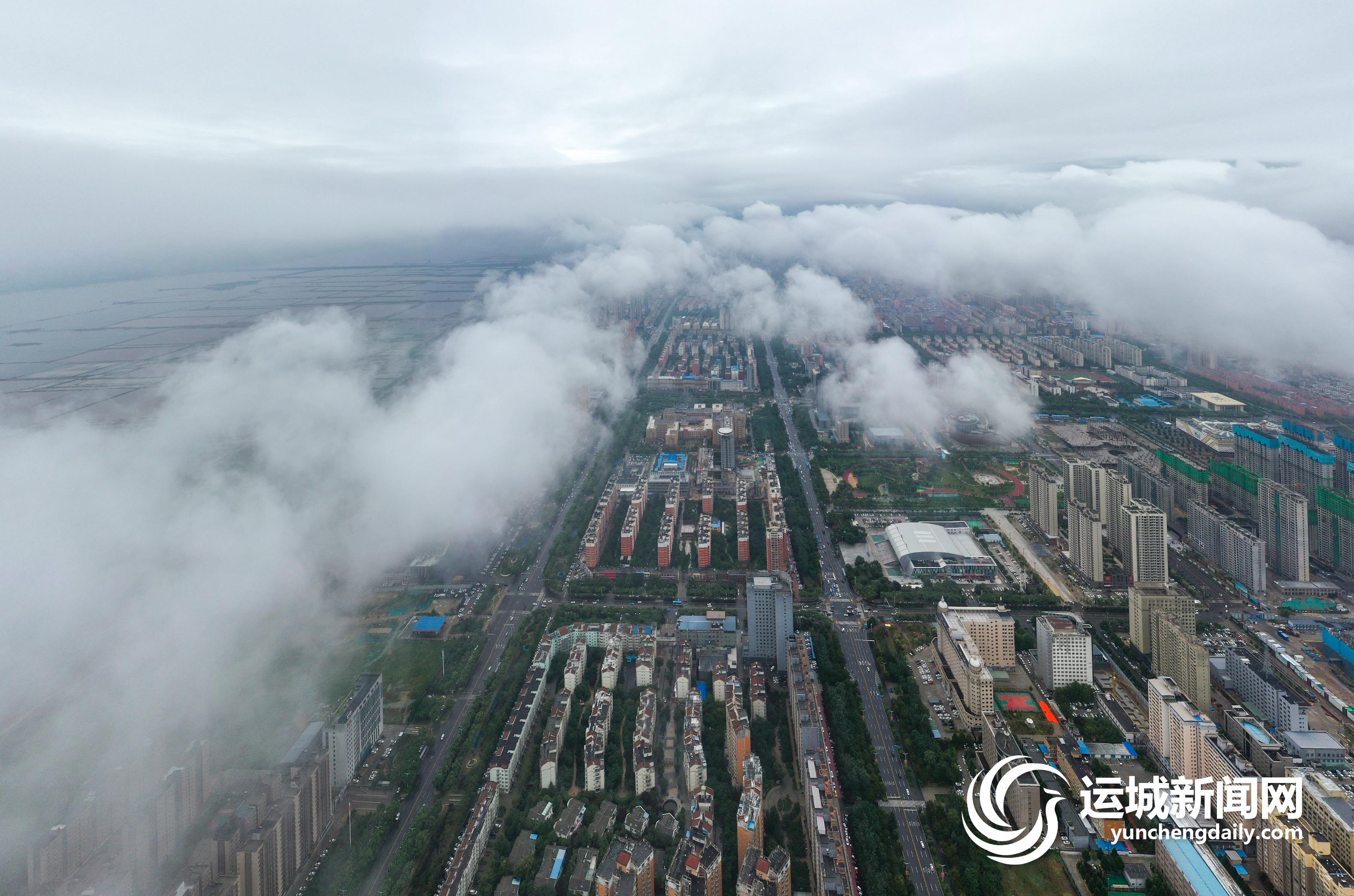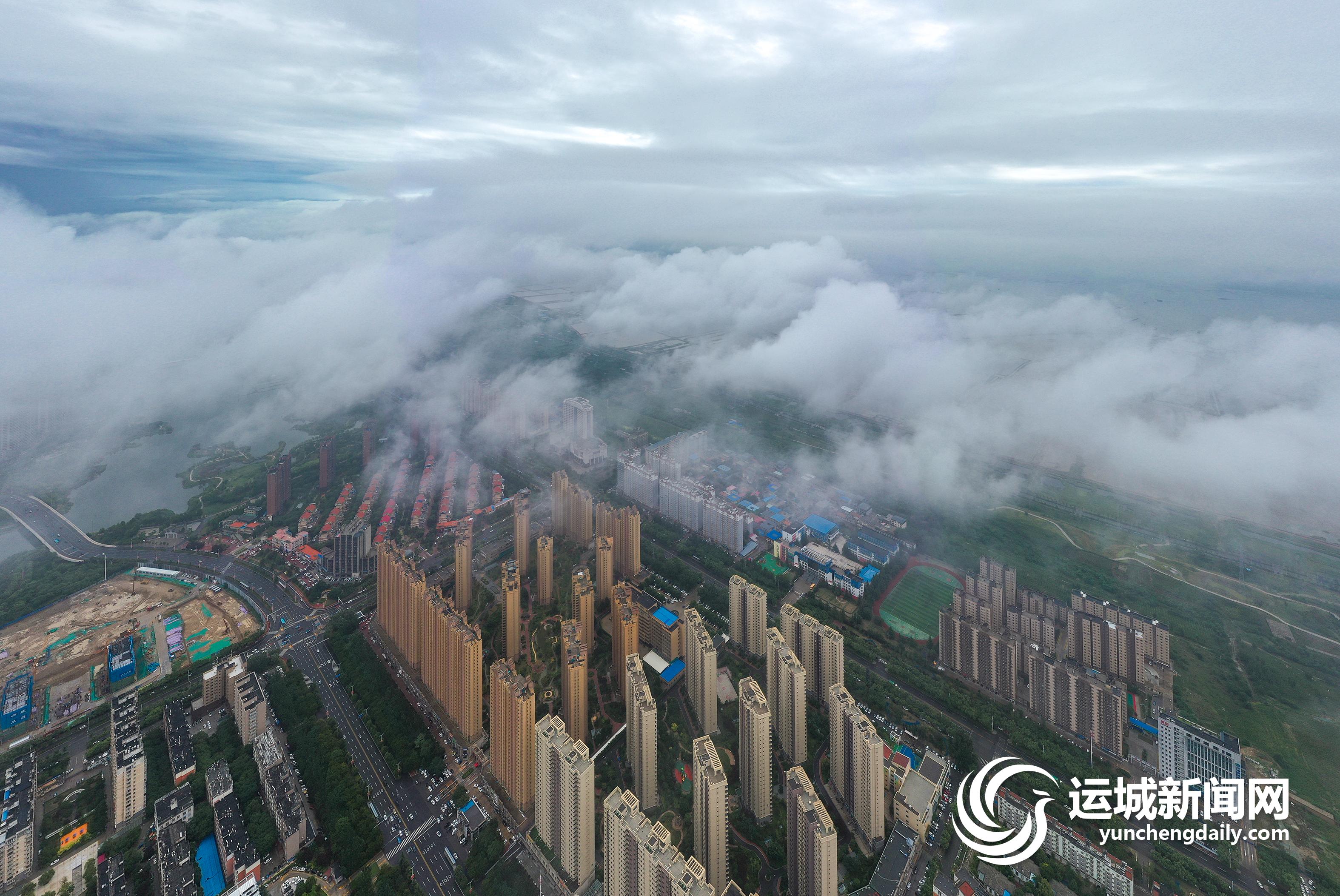 一场大雨过后,2022年7月13日上午,我市中心城区茂密的绿化,整齐的建筑群,碧绿的水系,在低空云海的映衬下,景色秀美,犹如人间仙境。 记者 金玉敏 摄影报道