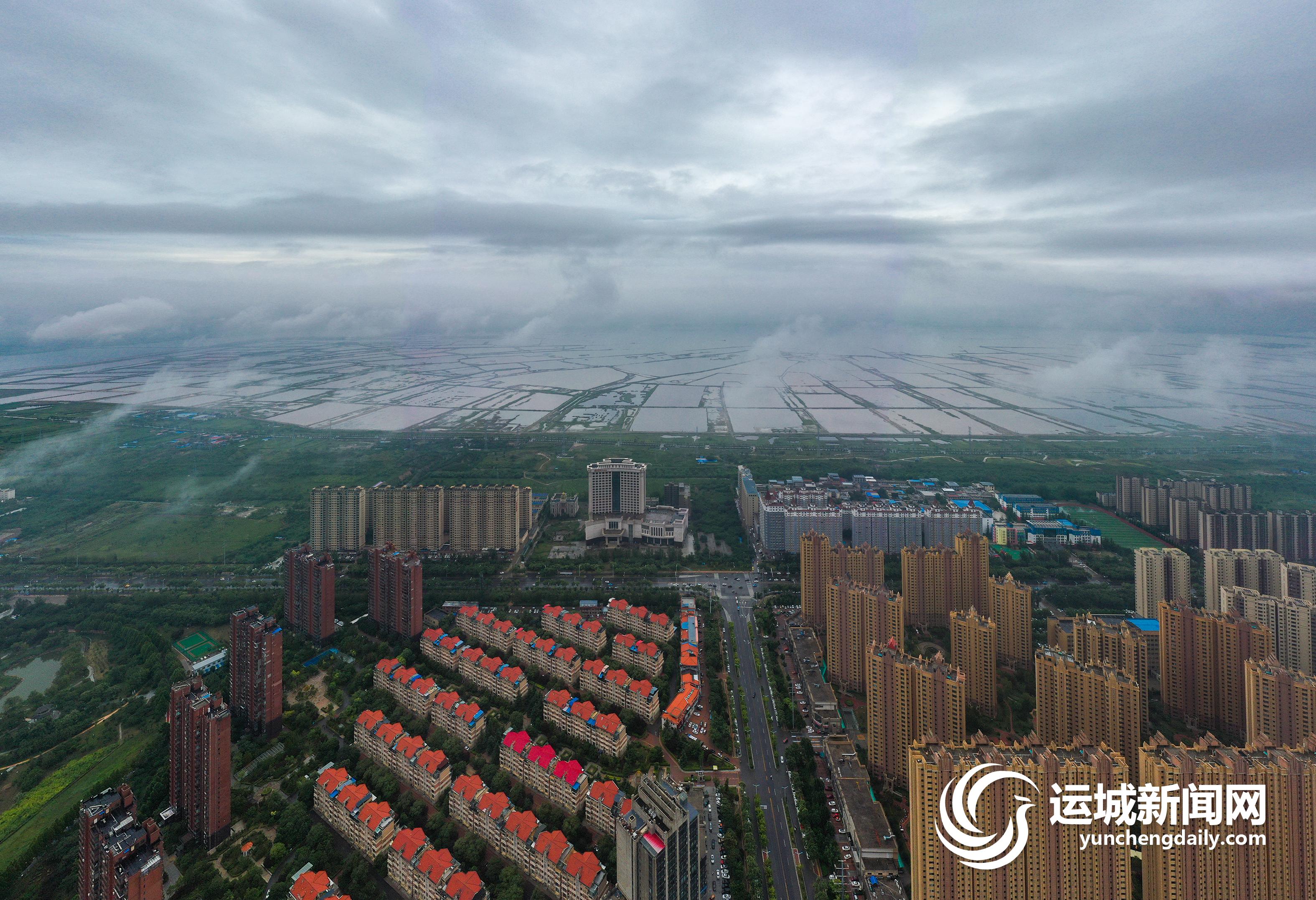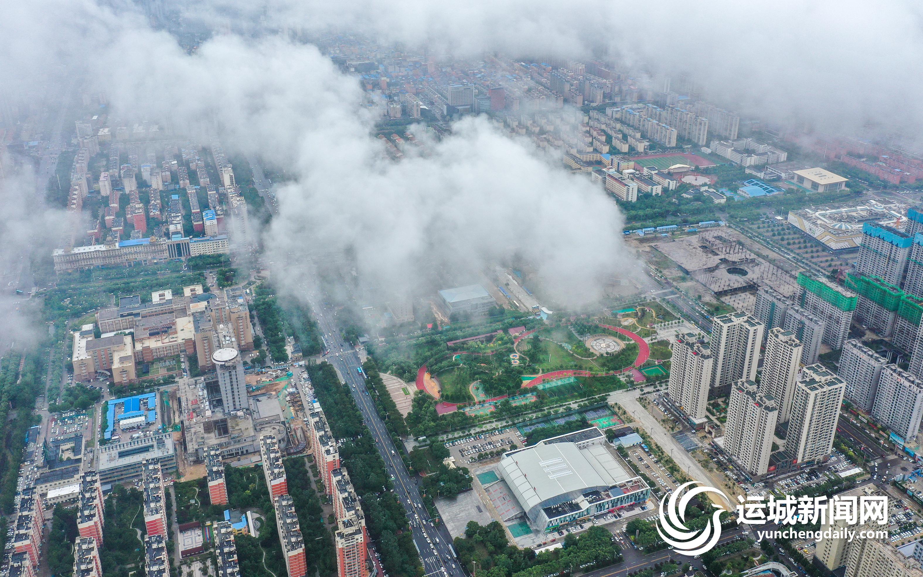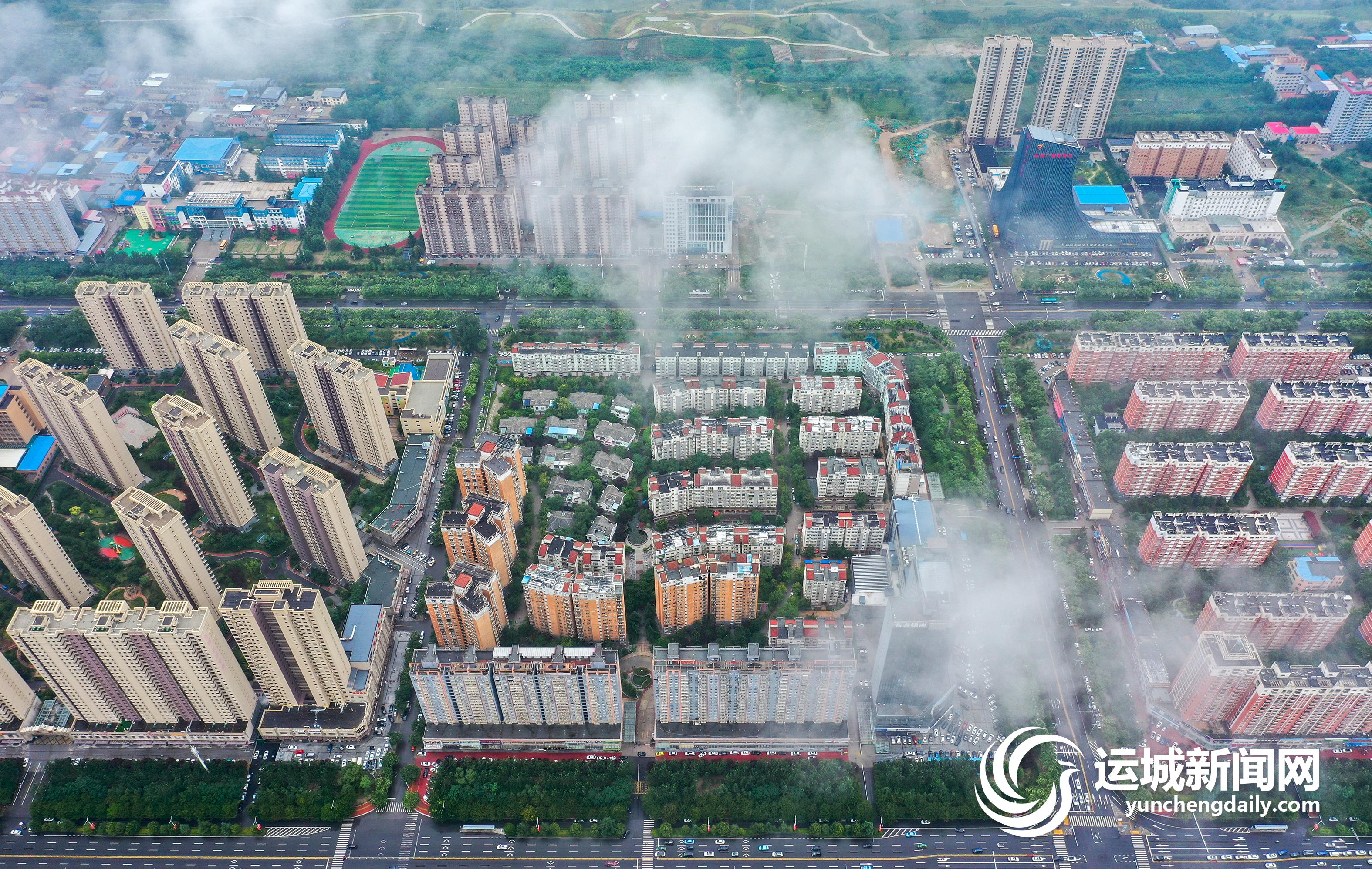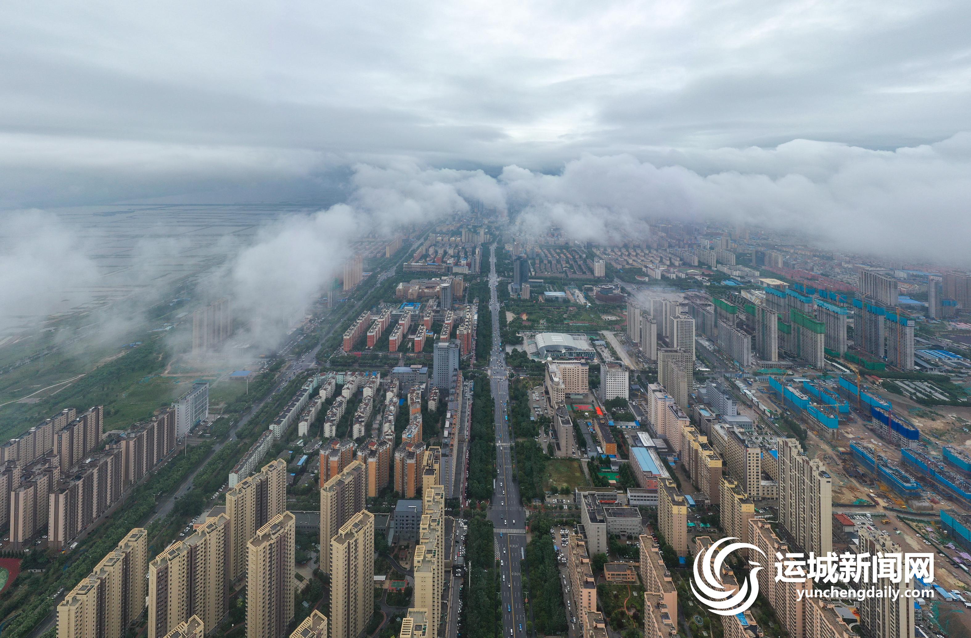 一场大雨过后,2022年7月13日上午,我市中心城区茂密的绿化,整齐的建筑群,碧绿的水系,在低空云海的映衬下,景色秀美,犹如人间仙境。 记者 金玉敏 摄影报道