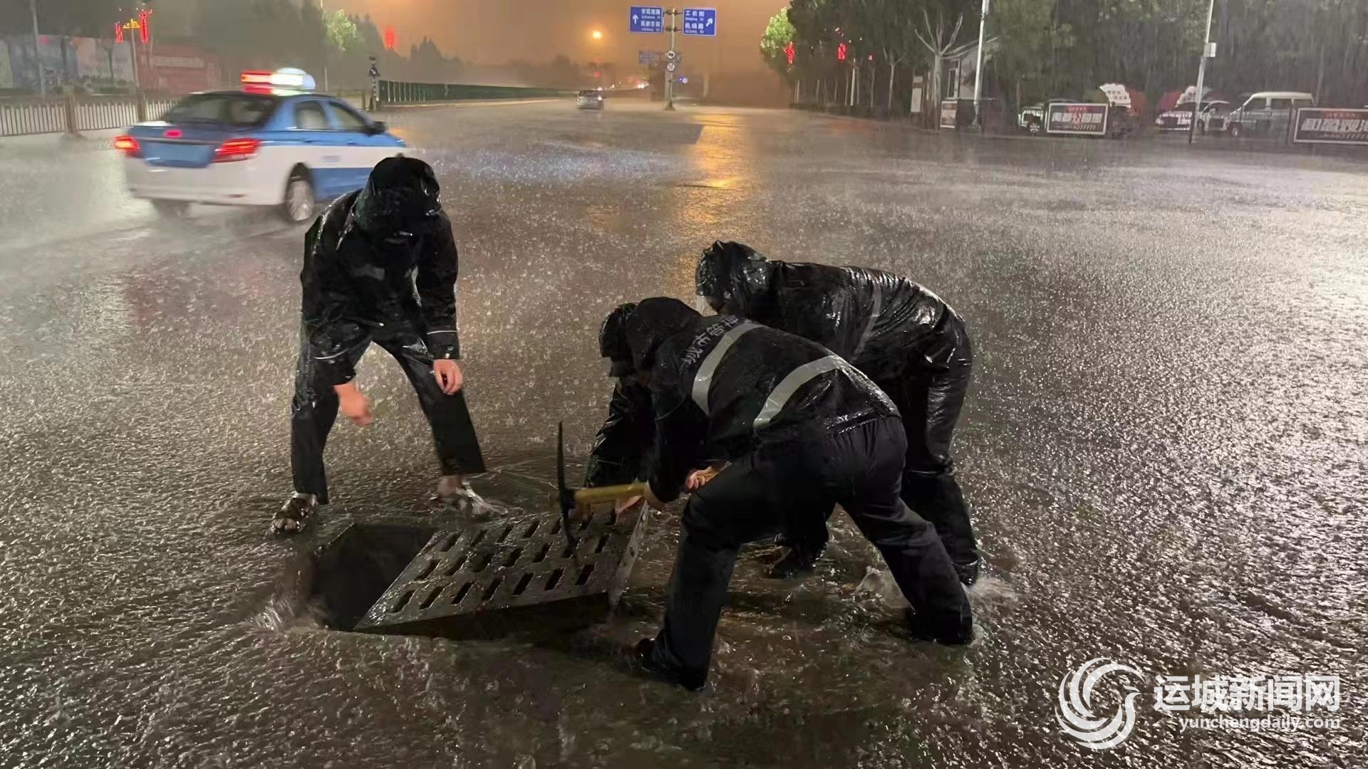 “下起来了,走,干活儿。”凌晨1时40分许,在市区学苑路大禹街口,该易积水点的负责人刘兵一声招呼,另外几名同事立即套上工作服冲进雨里,打开雨箅、立好警示牌……各司其职,忙活起来。
