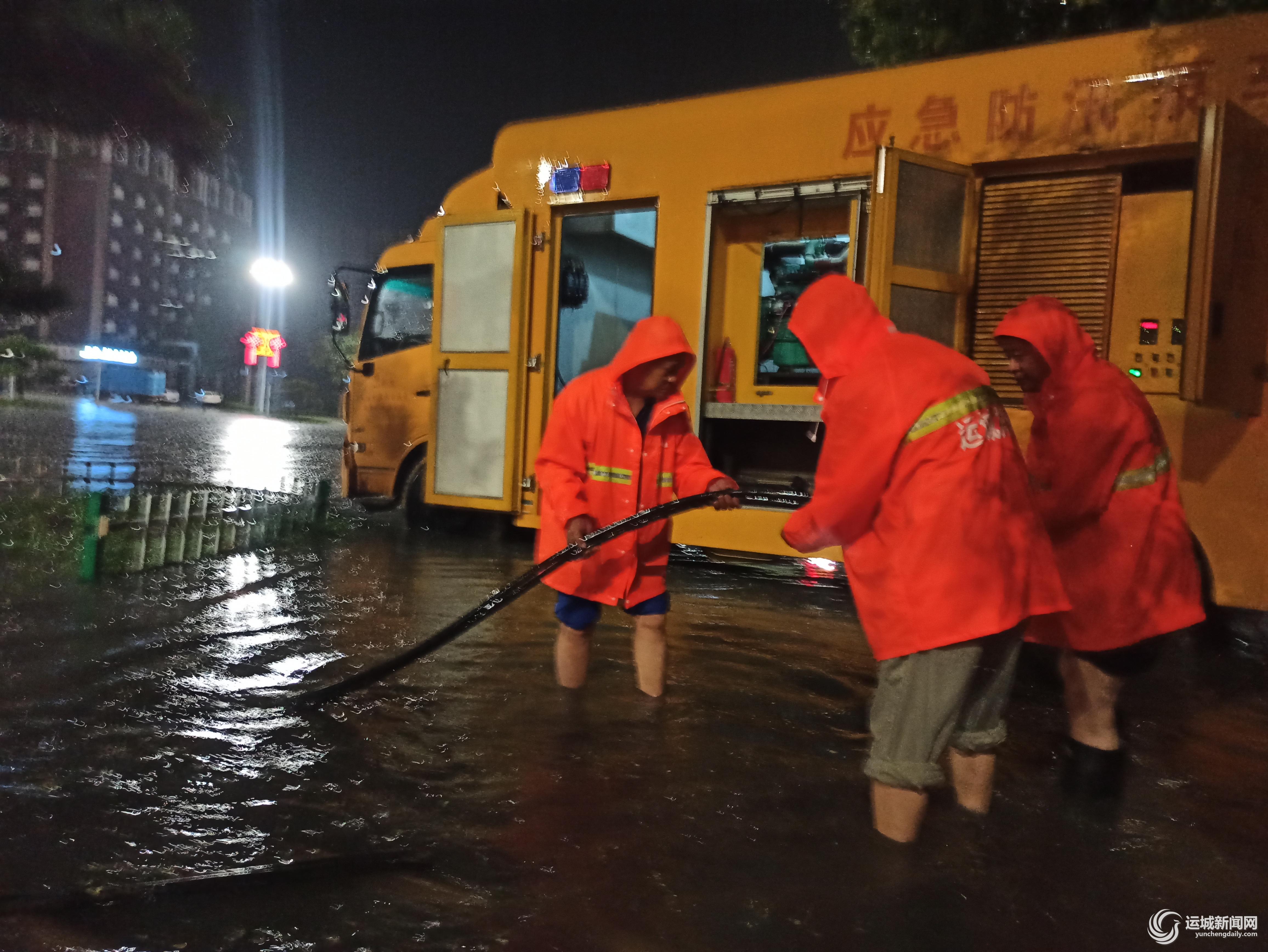 除了学苑桥北侧,这样的场景在市区其他街道也在同时上演。午夜暴雨中,广大防汛工作人员不顾疲劳,坚守在自己所负责的路段,及时抽排积水,并上报雨情、积水信息,对准确指挥、科学调度起到了重要作用。