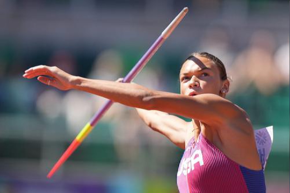 7月18日,霍尔在女子七项全能标枪比赛中试投。 当日,2022世界田径锦标赛女子七项全能比赛在美国俄勒冈州尤金市结束争夺,比利时选手蒂亚姆以总分6947分夺得冠军,荷兰选手维特尔和美国选手霍尔分别以总分6876分和6755分获得亚军和季军。新华社记者 吴晓凌 摄