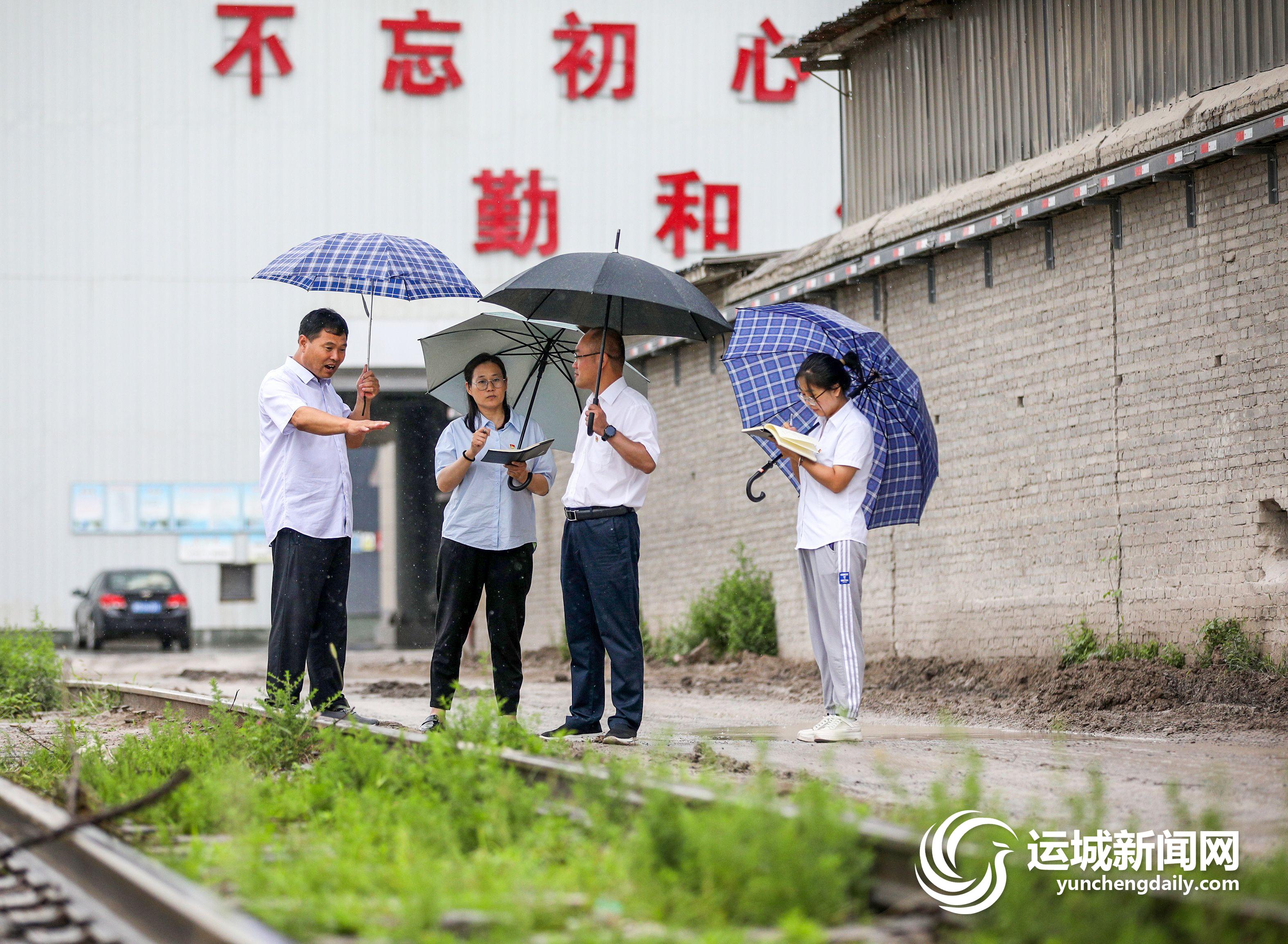 7月19日,绛县纪委监委工作人员冒雨在绛县明辉新型高钙灰厂走访调研,切实为该企业解决难题。