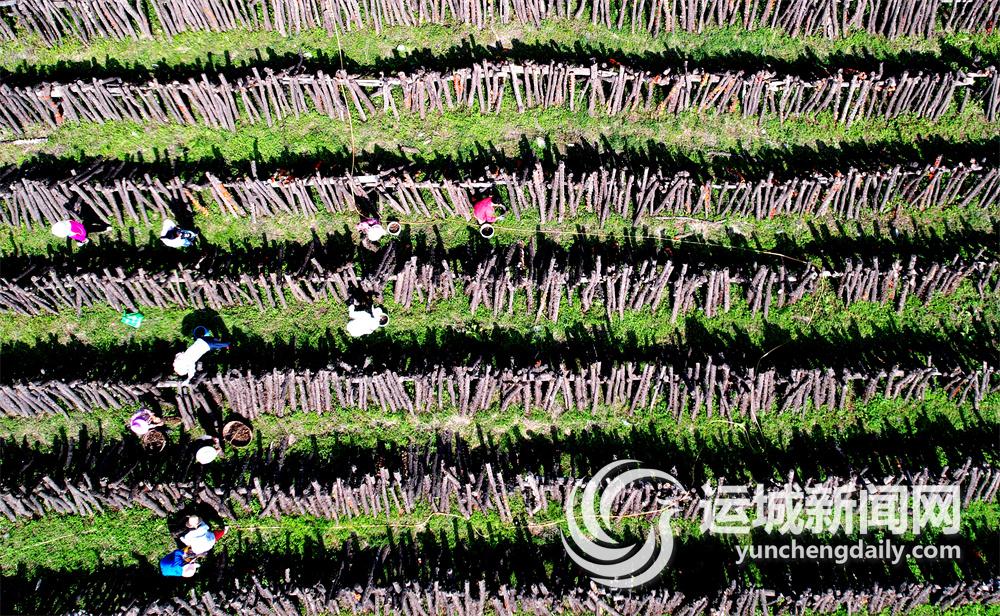 7月20日,在垣曲县历山镇望仙村木耳种植基地,村民们在采收黑木耳。