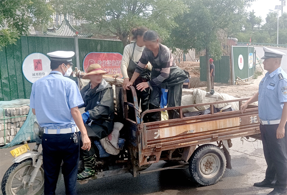 7月5日,稷山县公安局交通管理大队接到群众举报,某视频App上传播一条农用三轮车拉运多人的短视频。视频中三轮车驾驶座上两名女子,一人驾车,另一人用手机进行拍摄,车上共乘坐有8人,其中有4名未成年人。针对驾驶人张某贤存在未取得驾驶证情况下驾驶农用三轮车且违法载多人的违法行为,民警依法对张某贤作出罚款500元并处拘留3日的处罚,对乘坐人进行了批评教育。