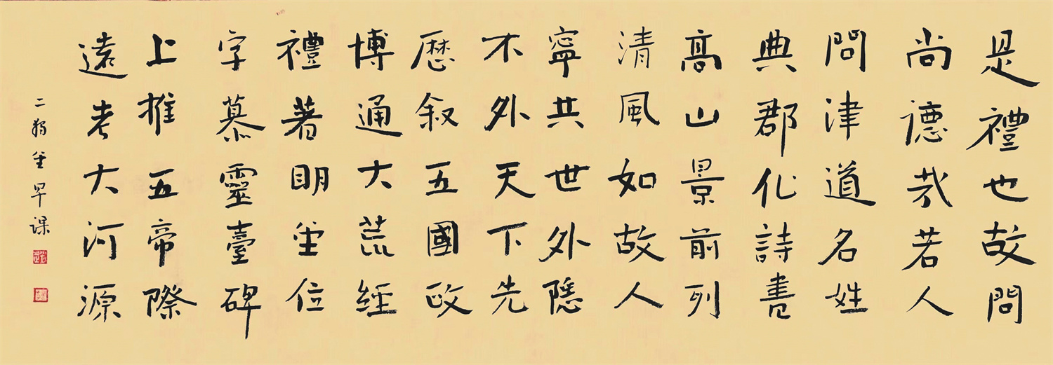 赵建功在书法艺术方面,也是很有灵气和天赋的。记得我们上大学的时候,建功的硬笔字就写得很好、很大气。班上的黑板报及学校分配给中文系的超大的板报,常由我们两个还有另外一个同学一起去编写的。我们班代表全系水平的板报,常常令人刮目相看。这其中,建功同学漂亮的板书,可谓功不可没。硬笔书法与软笔书法有它的相通之处,建功具有书法艺术家的天赋,不仅表现在他的硬笔字写得好,更主要的是他对古人碑帖、拓片的理解与领悟。他的悟性很高,通过对古代书法艺术家代表作品的反复读、悟、临,他会很快得其要领并能融化为己有。读帖,悟出要领;临帖,掌握笔法、墨法技巧。久久为功,熟能生巧,然后融会贯通,自然而然地将古风古韵融进了他的书法作品中。有这种天分,再加上几十年如一日的日积月累,刻苦临帖,不成大器才怪呢!