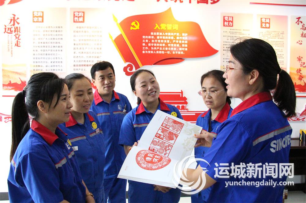 7月24日,中国石化运城石油分公司闻喜姚村加油站员工在交流学习廉洁文化。