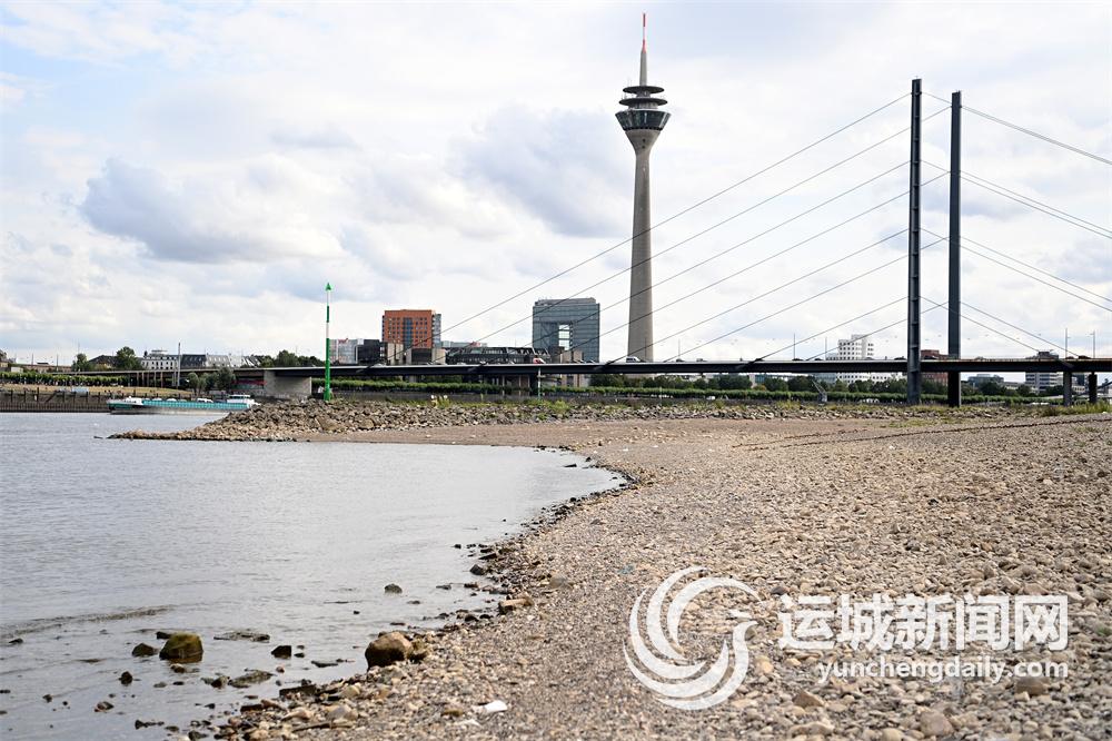 这是7月26日在德国杜塞尔多夫拍摄的莱茵河。受高温和干旱影响,德国莱茵河水位下降。 新华社发