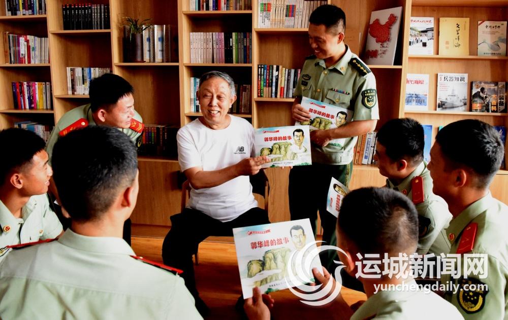 7月26日,武警垣曲中队图书室,退休美术教师赵新生向官兵讲述红色故事。