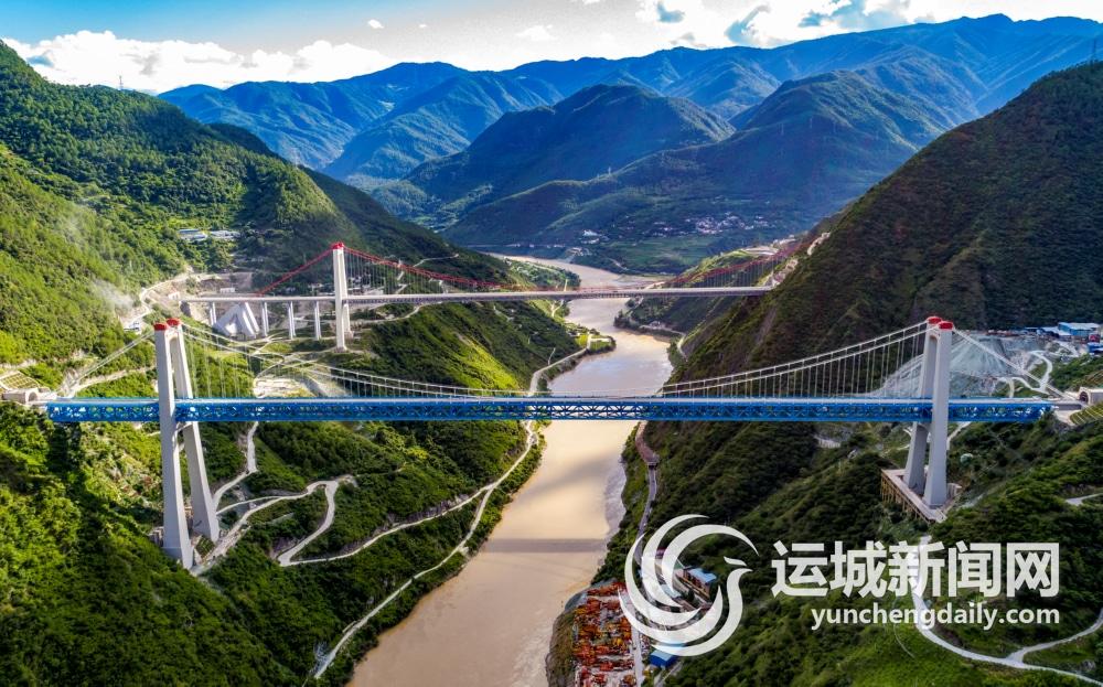 这是近日拍摄的丽香铁路金沙江特大桥(前),远处是香丽高速金沙江特大桥。