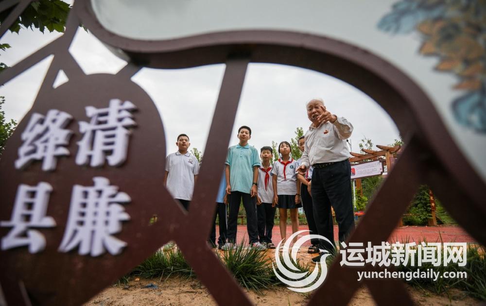 7月26日,绛县古绛镇尧寓村尧文化公园,“尧的传说”非遗传承人李友益在给学生讲述尧的传说。
