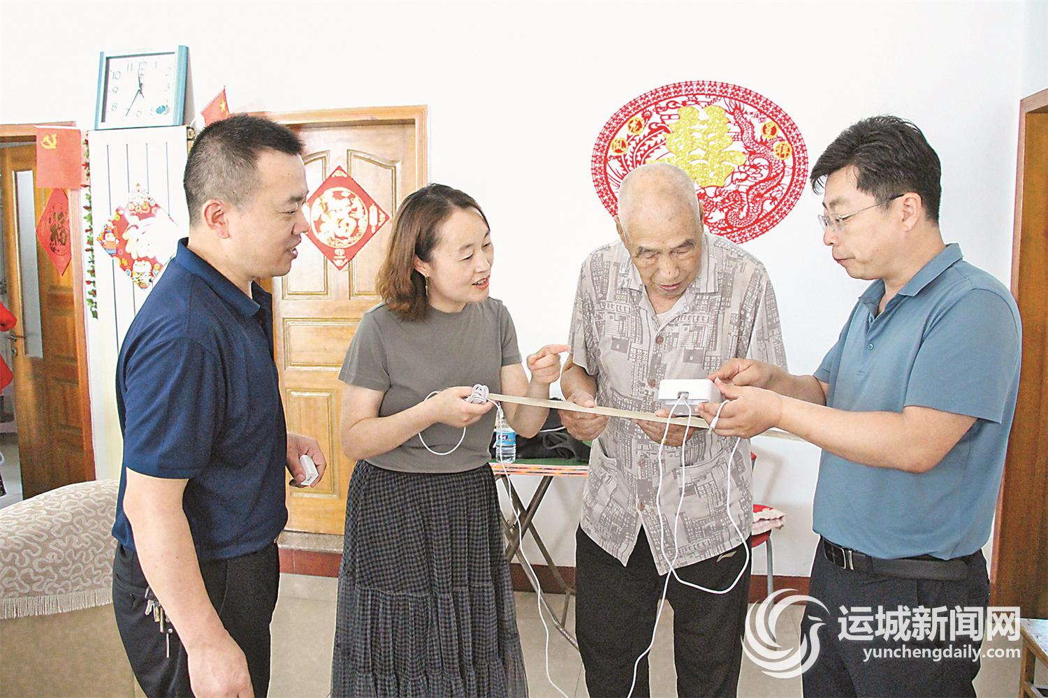该系统可远程监测老人的心电、呼吸,形成睡眠分析报告和异常预警信息报告,实现线上掌握老人各项生理机能变化情况,及时为老人提供救助,解决子女的后顾之忧,提升老人生活质量。该项目已被列为闻喜县基层治理10个样板间示范创建内容,实现对1000名老人网络监测。吴娜 摄