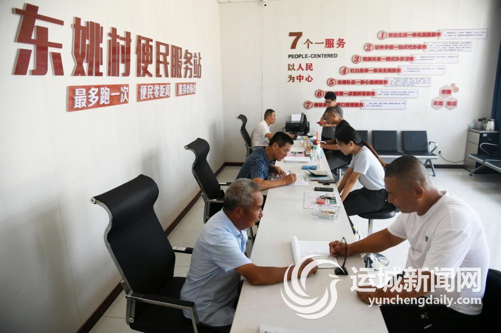 7月27日,闻喜县东镇东姚村便民服务站工作人员在为村民办理相关手续。