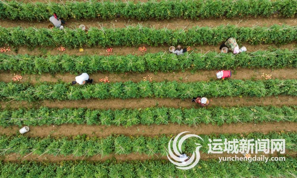 7月25日,平陆县张店镇风口村500余亩露地西红柿陆续成熟,种植户忙着采摘、分拣。