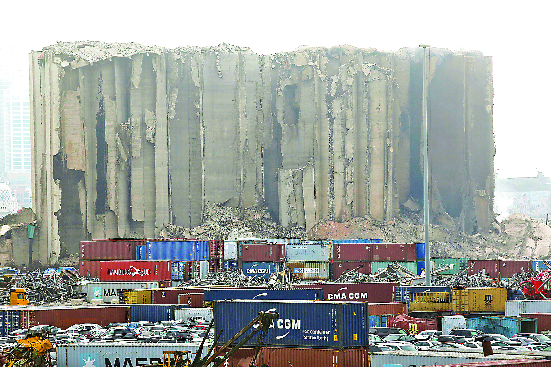 这是7月31日拍摄的部分坍塌的黎巴嫩贝鲁特港口粮仓。