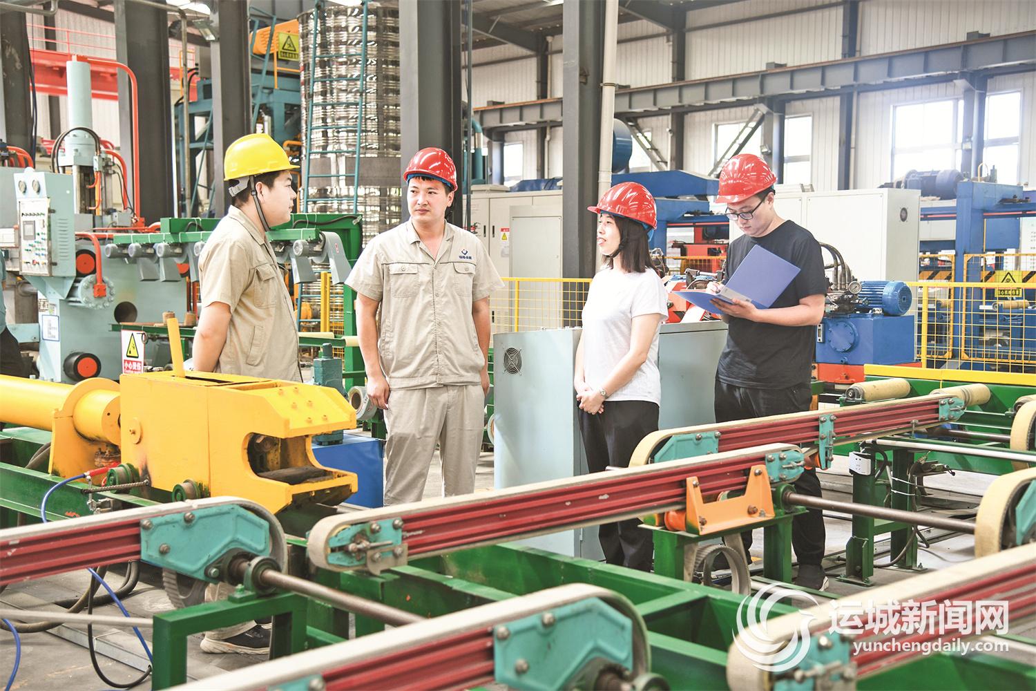 8月1日,闻喜县纪委监委工作人员在山西瑞格金属新材料有限公司车间了解企业生产情况。 今年以来,闻喜县纪委监委充分发挥群众监督的优势,督促县政务服务中心在65个窗口全部配备“好差评”评价设备,让办事群众采用线下评价卡或二维码登录方式对所办事项进行评价;对全县优化营商环境19个重点单位在政策落实、履职尽责、担当作为、服务质量、“新官理旧账”等方面进行测评,县纪委监委定期对评价问题进行梳理汇总、定性分析,对没有及时完成的,由监督检查室或派驻纪检监察组下发《督办函》,进行挂牌督办;对差评多的单位,下发《纪检监察建议书》,督促有关部门着力破解影响营商环境的体制性障碍、机制性梗阻问题,形成长效机制,提升治理效能,助推营商环境提档升级。