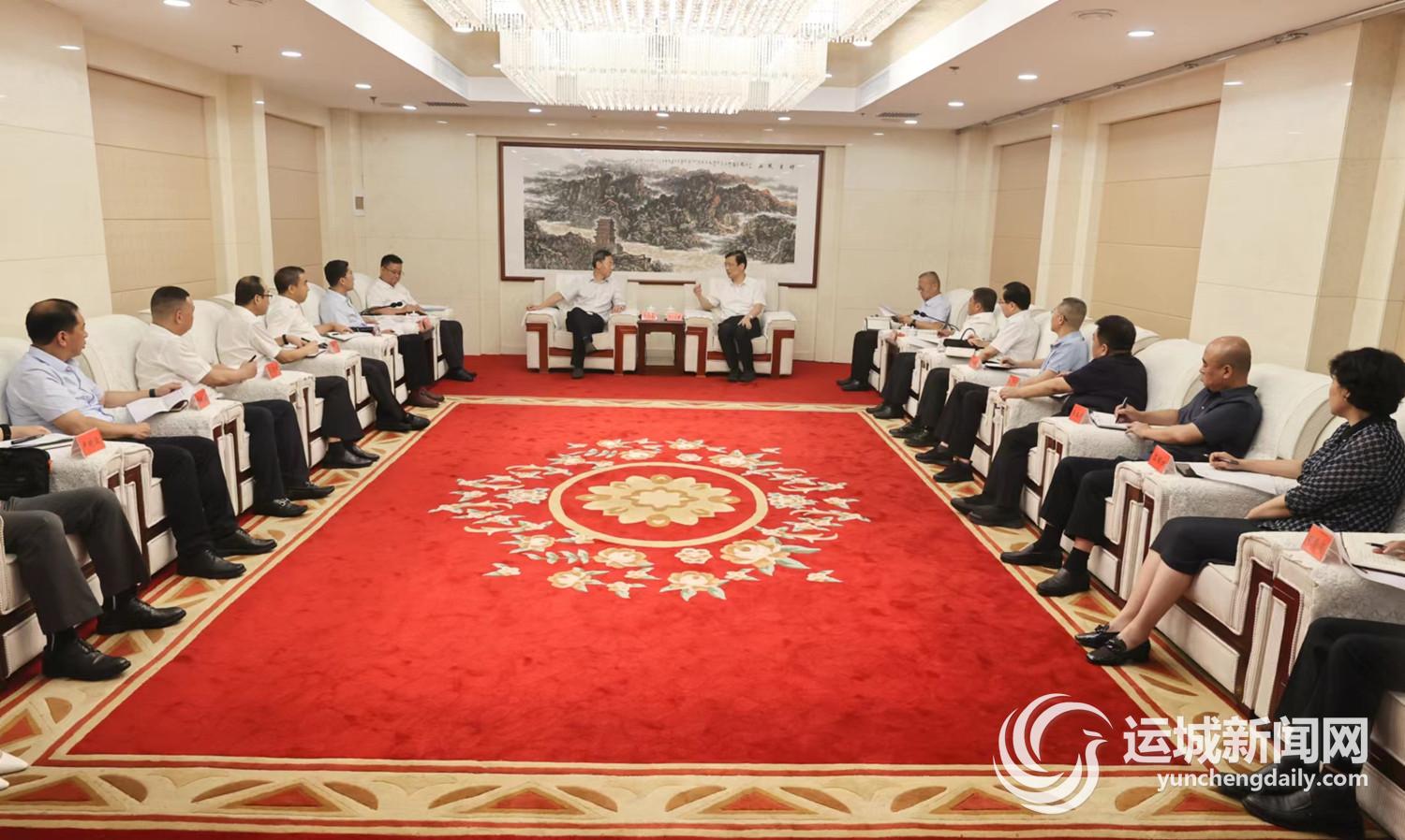 丁小强代表市委、市政府对王延增一行来运表示欢迎,对农发行山西省分行长期以来对运城经济社会发展的鼎力支持表示感谢,并介绍我市上半年经济社会发展情况。丁小强指出,当前,运城全市上下正深入学习贯彻习近平总书记考察调研山西重要指示精神和“疫情要防住、经济要稳住、发展要安全”的重要要求,高效统筹疫情防控和经济社会发展,继续用好“五抓一优一促”经济工作主抓手,以“五条绿色走廊”实际成效,推动黄河流域生态保护和高质量发展示范区建设行稳致远。作为山西农业大市,运城正在聚焦“特”“优”战略,大力发展现代农业,推动由农业大市向现代农业强市迈进。这为双方在保障国家粮食安全、农产品深加工、新型城镇化建设、农旅融合等领域提供更多合作空间。希望农发行山西省分行继续加大支持运城力度,深度参与我市乡村振兴、新型城镇化、农文旅融合和国有资产存量盘活等领域项目。市委、市政府将建立常态化、多层次对接机制,成立工作专班,加强精准对接,推动形成更多项目合作的实物工作量,实现互惠互利、共同发展。