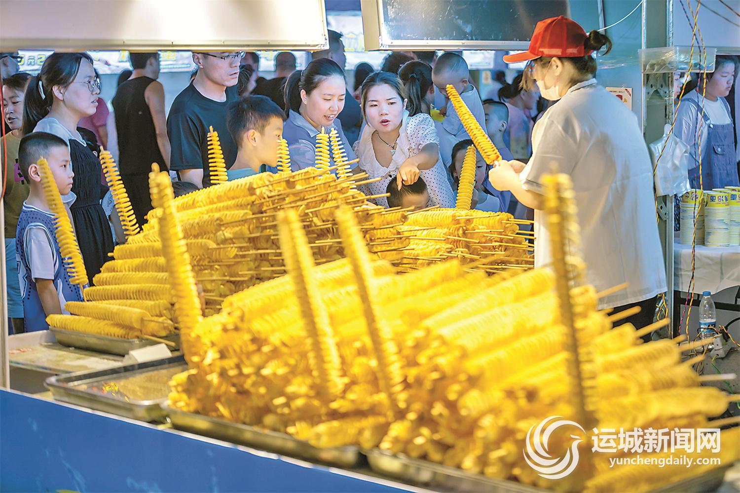 今年以来,万荣县开展了“万民嗨购·荣享豪礼”系列促消费活动,进一步提振消费信心、活跃消费市场、推动消费升级,特别是打造县域夜经济,真正让夜晚“亮”起来、让人气“聚”起来、让消费“火”起来。图为8月3日晚,市民在万荣县消夏美食节上品美食。