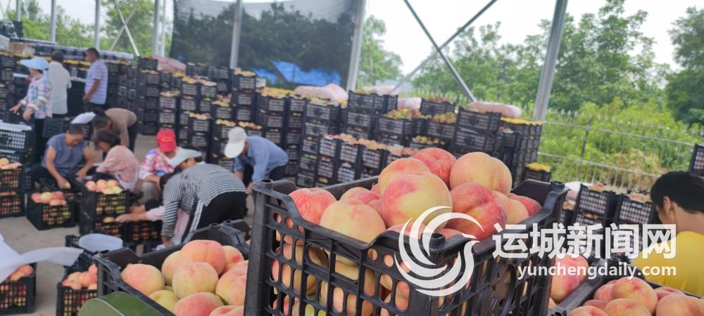 8月2日,平陆县杜马乡上村村民正在新建成的桃果市场内销售“大久保”鲜桃。