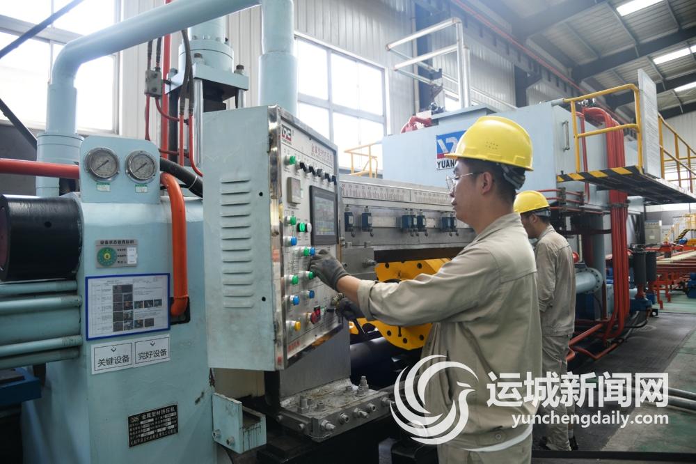 8月8日,山西瑞格金属新材料有限公司工人在车间生产设备前操作。