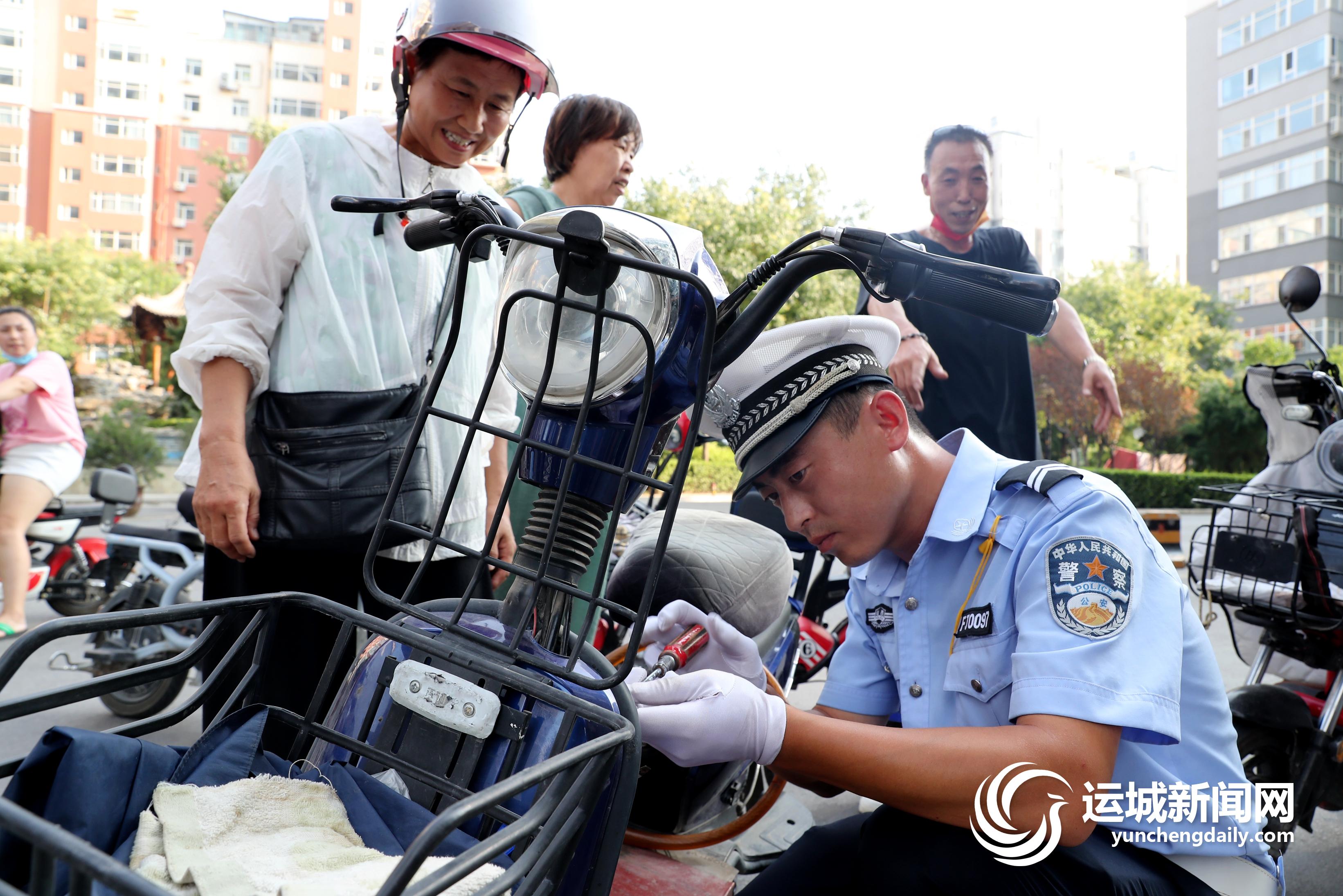 8月6日,盐湖公安分局交警大队主城区交警中队在辖区设置了30多个便民服务点,为群众提供上门或就近电动自行车上牌服务。