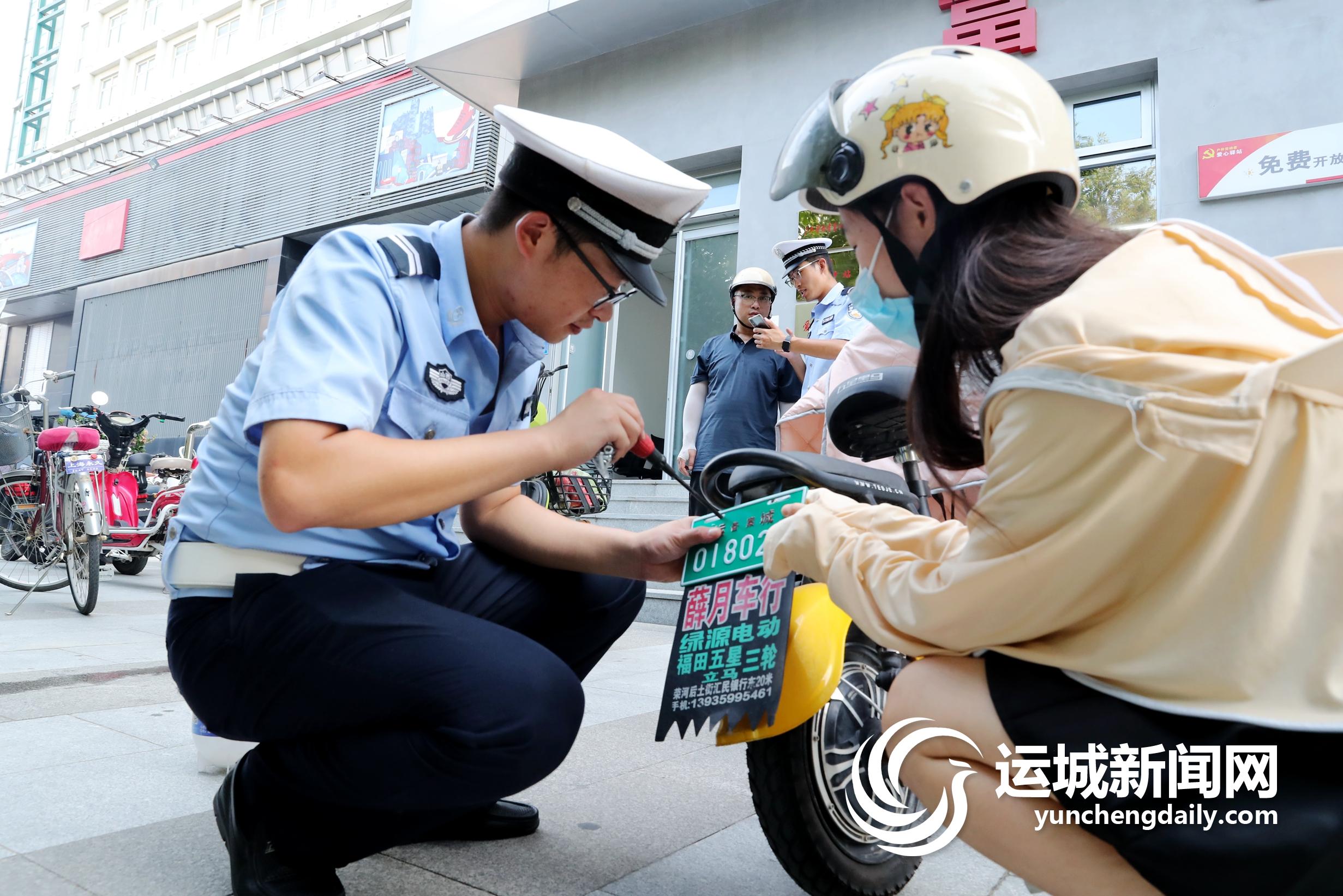 “符合电动自行车新国标的上白牌,电动摩托车要到车管所上机动车号牌。”在交警岗亭内,盐湖交警大队四中队民警蔡高雨耐心地解答道。