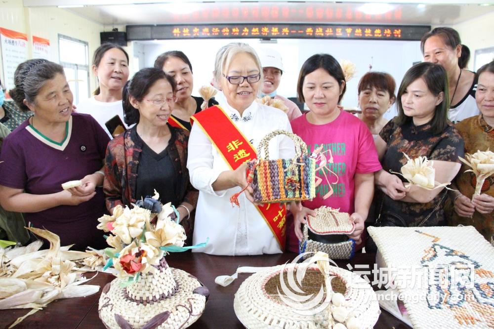 8月6日,闻喜县西城社区组织30余名妇女学习草编技艺。