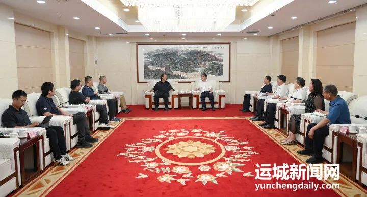 储祥好对高世名一行表示欢迎,并简要介绍了我市经济社会发展情况。储祥好说,运城地处晋陕豫黄河“金三角”中心地带,历史悠久、人文厚重,是华夏文明发祥地,“这里最早叫中国”。舜都蒲坂、禹都安邑以及夏的都城均在运城。解州关帝庙、永乐宫、鹳雀楼、普救寺、盐湖驰名中外。当前,运城正以建设黄河流域生态保护和高质量发展示范区为牵引,着力打造新兴产业、现代农业、知名旅游强市。依托丰富的旅游资源,积极筹备山西省第八次旅游发展大会,实施河东历史文化展示中心、古中国成语典故园等文旅项目,推进关公故里、五老峰等5A级景区创建,促进历史文化积淀与城市发展有机融合。推动城市更新提质蝶变添彩离不开美学赋能。中国美术学院是“双一流”建设高校,希望充分发挥人才、创意、平台等优势,将更多美术元素、艺术元素应用到运城城乡规划建设、文旅融合发展等领域,增强城市审美韵味和文化品位。运城愿为美院的创作创新提供土壤与空间,做好服务和保障,推动市校合作结出丰硕成果。