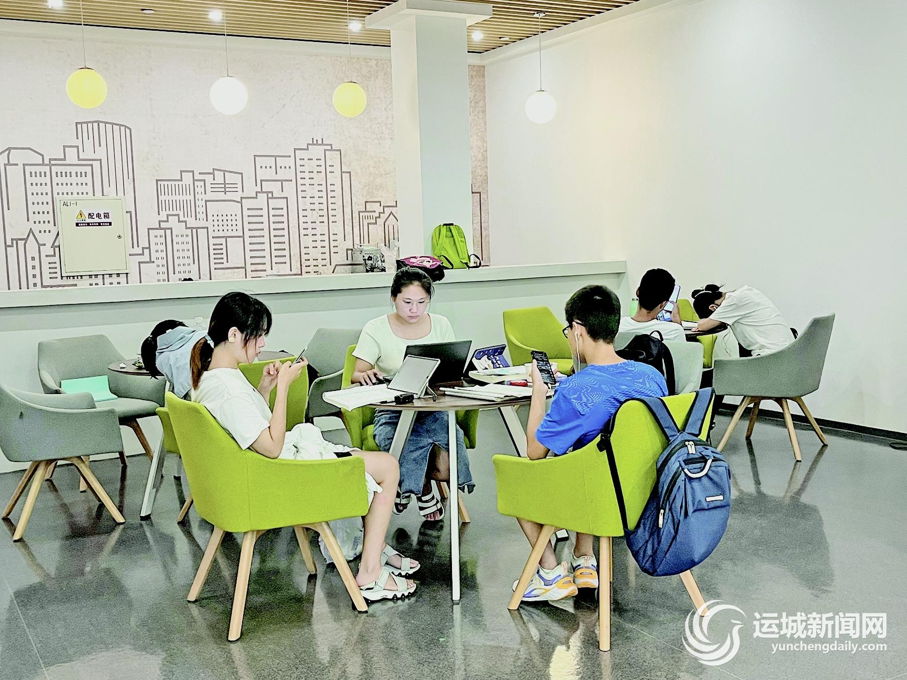 图书区也早已座无虚席,大家在清凉、静谧的环境中徜徉书海,享受充实而有意义的夏日时光。市民沈卓最近正在备考相关专业考试,图书馆就成了他学习的首选之地。“天气太热了,在家里没有学习氛围,来这和朋友一起学习、相互探讨,学习氛围更浓,而且这里环境整洁、舒适,还有很多便民设施,非常方便,我可以在这待上一整天。”他说。