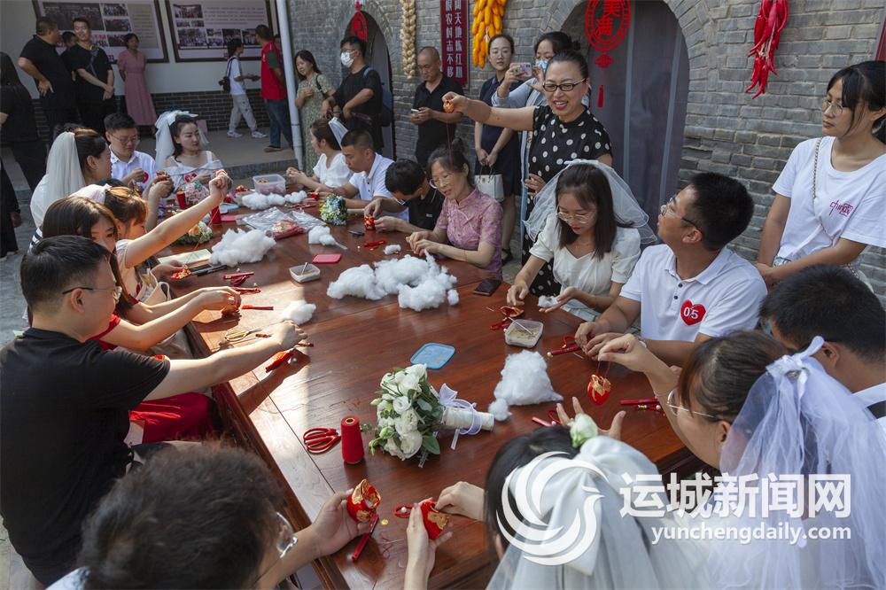 ▲8月4日,盐湖区为9对新人进行集体颁证,新婚夫妻分别独自制作香囊并赠予对方。资料图片