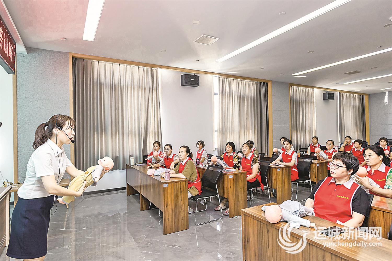 ▲8月12日,学员在运城同德职业培训学校,参加母婴护理师培训。