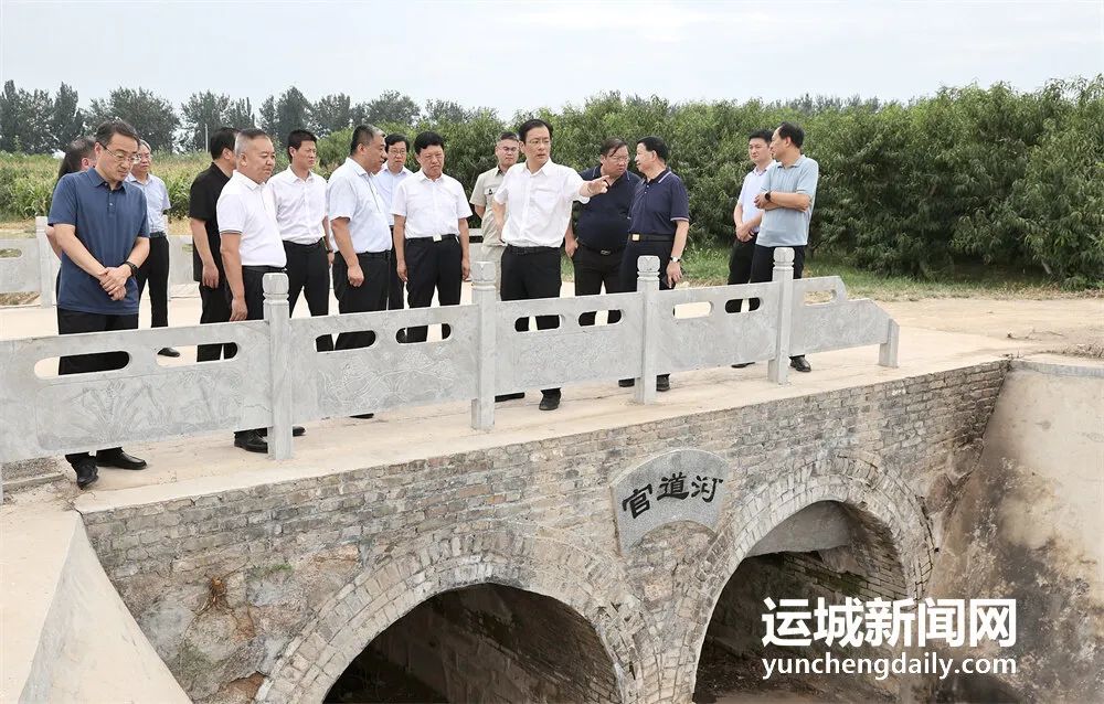 本报讯(记者 王文军)8月15日,市委书记丁小强深入盐湖区冯村乡官道河河口、官道河阳倦村段、官道河舜帝街河道治理现场和官道河尧梦湖项目建设现场等处,调研官道河生态修复与整治工程及中心城区防洪排涝工作。他强调,要深入践行习近平生态文明思想,统筹水资源、水环境、水生态治理,打好河湖连通、生态修复组合拳,提高中心城区防洪排涝能力,让河湖展新颜、清水润民心,不断提升人民群众的幸福指数。市领导乔登州、刁海鹏等参加调研。