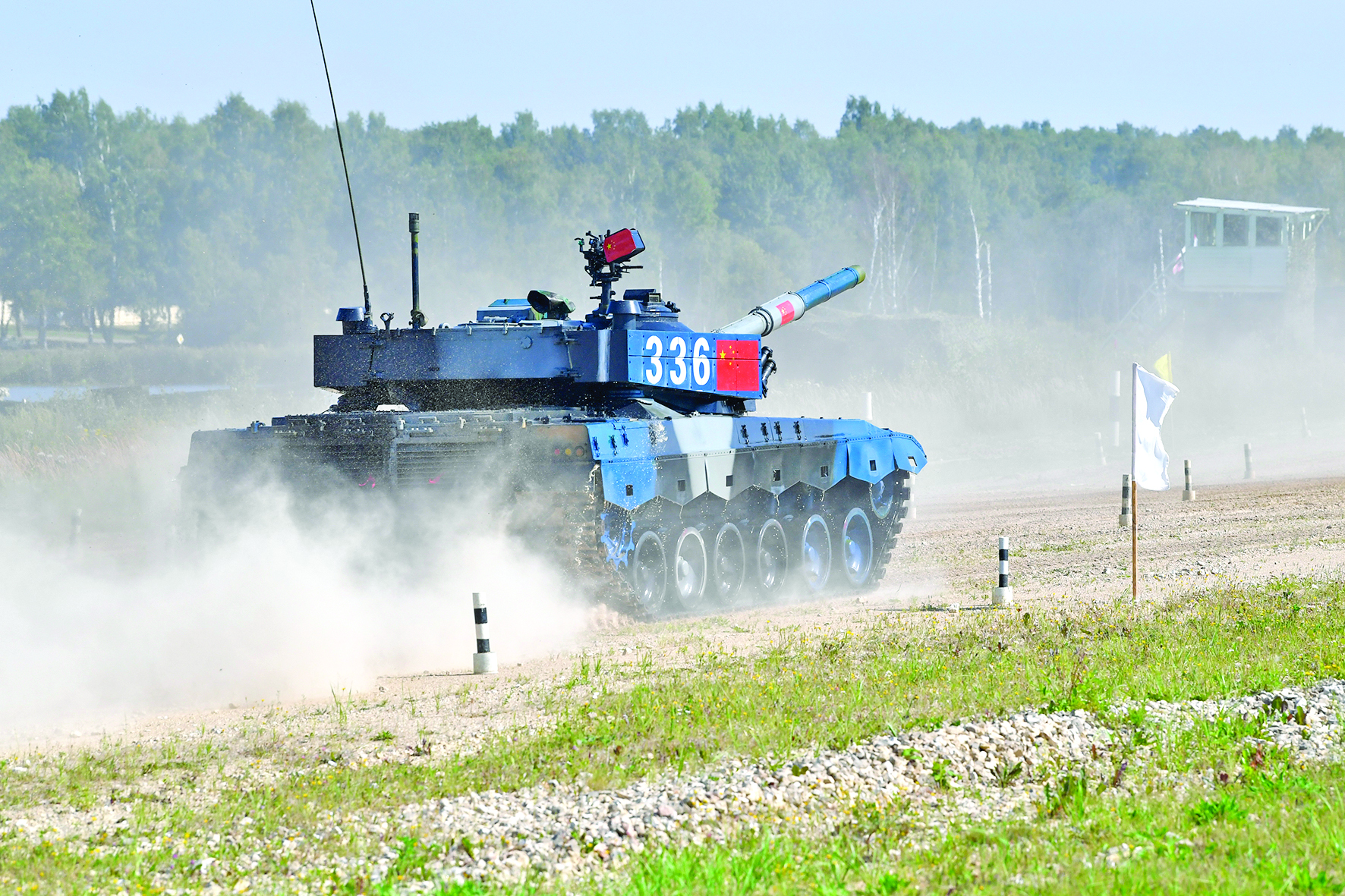▲8月14日,在俄罗斯莫斯科州阿拉比诺靶场,编号336的中国参赛队96B坦克亮相赛场。