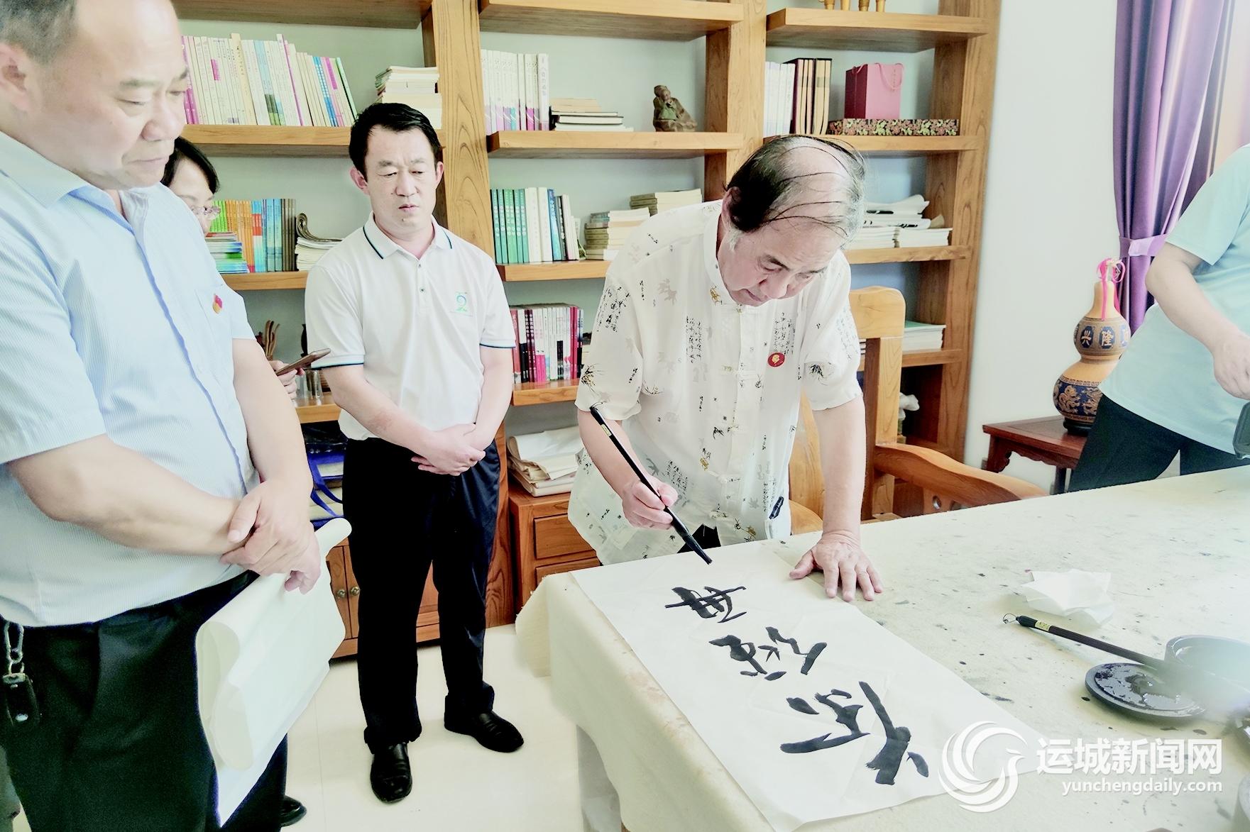在厚民晋茶基地,采风团一行不仅即兴出联对句,而且现场挥毫泼墨,“禹甸新栽龙井树,茶经再续厚民篇”“彩虹路上牡丹盛,禹甸源头富矿开”“清风半卷玲珑叶,山色常留自在人”“好水好山同入黄,一芽一叶总关情”等楹联书法作品,展示了夏县黄河文化蕴含的时代内涵,也让我们看到了楹联作为讲好黄河故事、延续历史血脉、坚定文化自信的一个重要载体,发挥出的重要作用。