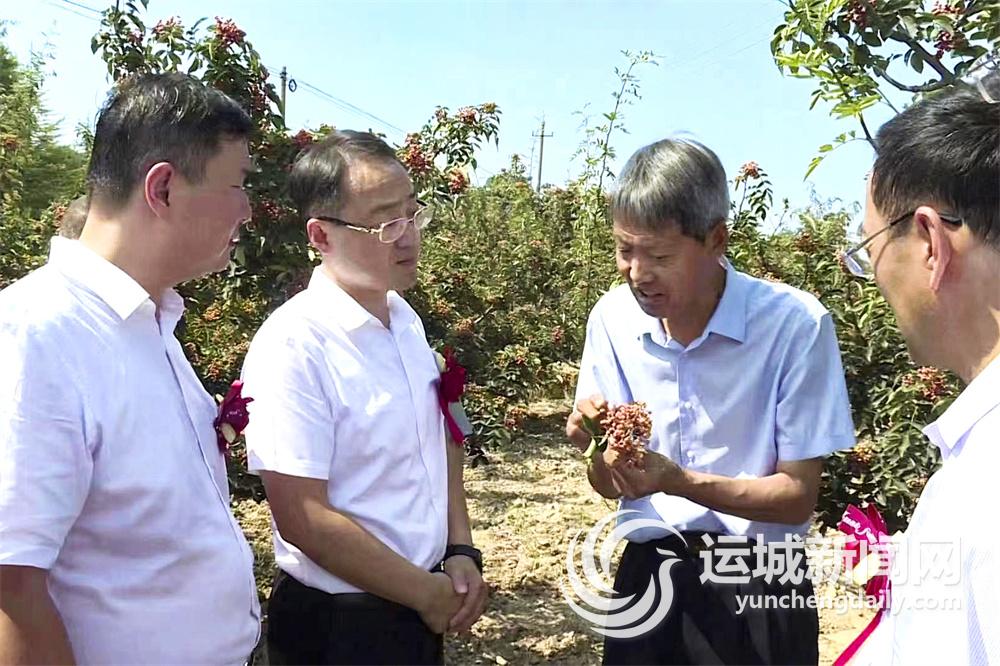 副市长刁海鹏,芮城县委副书记、县长余敏,省级花椒专家王加强等在花椒示范基地观摩调研。