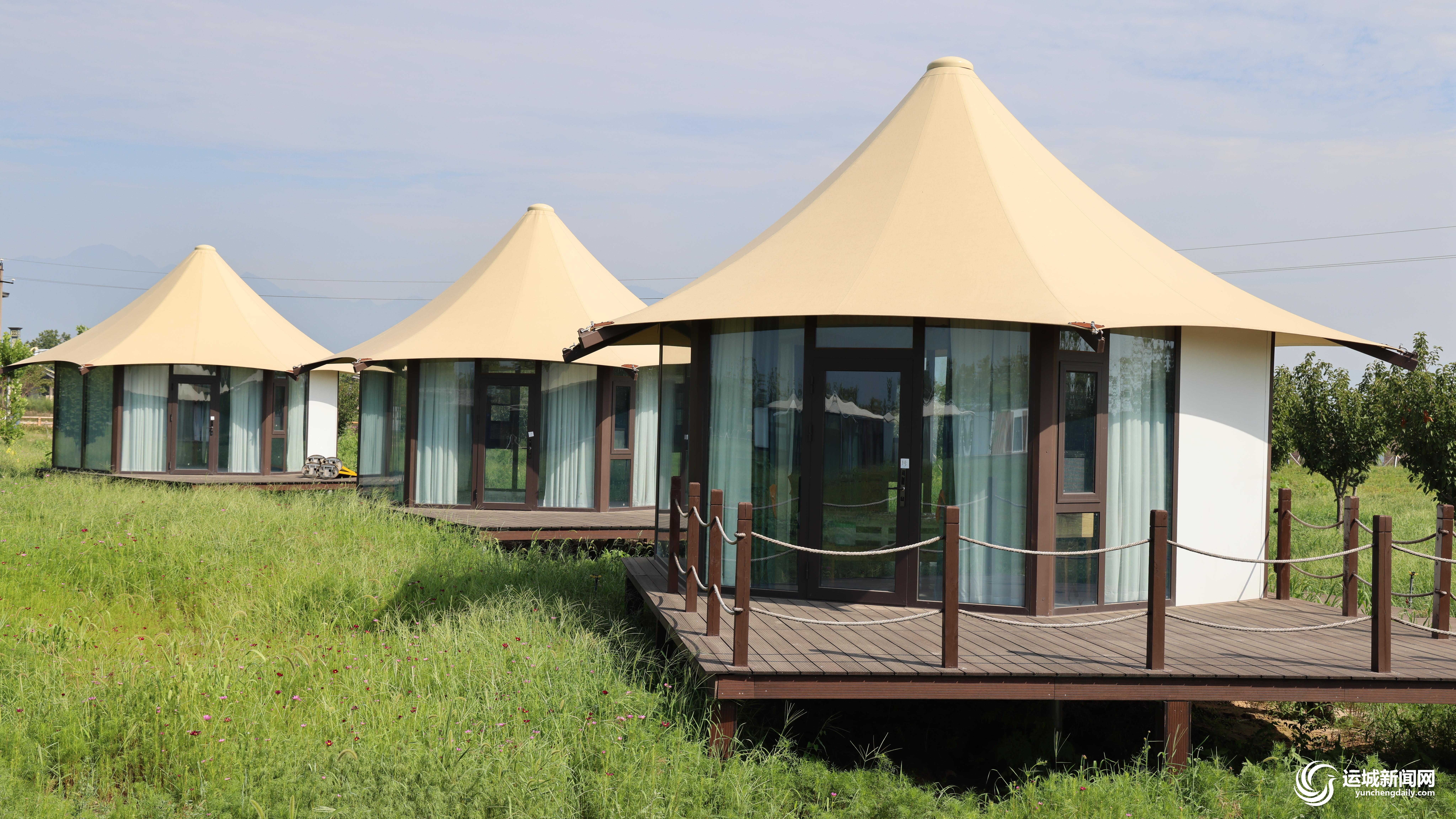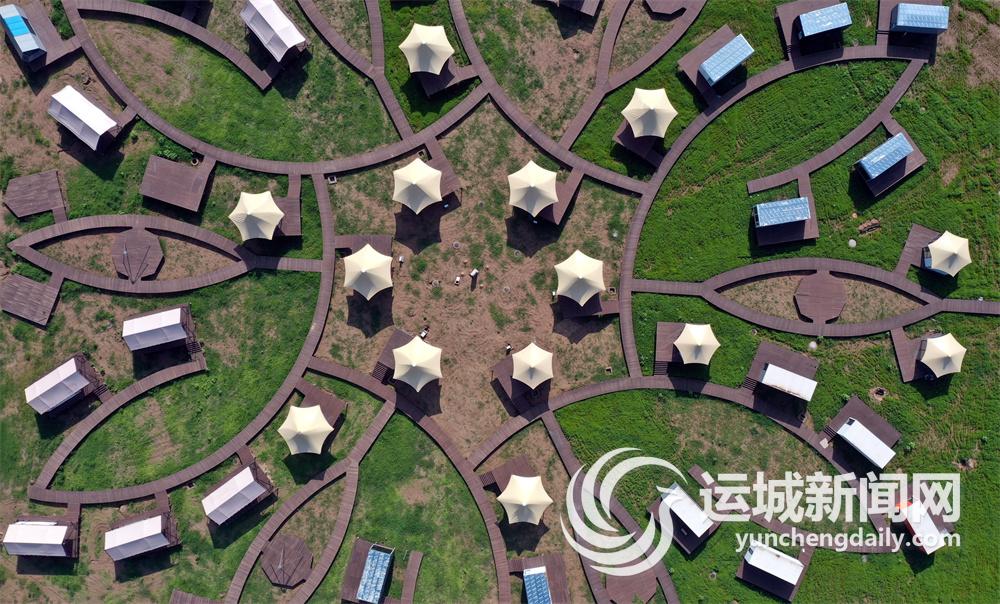 永济市鹳雀楼非标营地酒店项目位于鹳雀楼景区内,占地120余亩,以鹳雀楼湿地花海为依托,点缀设置酒店式住宿单元,客房之间采用竹木地板栈道连接。目前,该项目已完成基础设施建设部分和房屋安装,后续工程正在加快实施。该项目建成后,将集旅游、住宿、餐饮、休闲观光、户外露营、青少年课外研学等功能于一体,带动后疫情时代旅游经济快速发展。