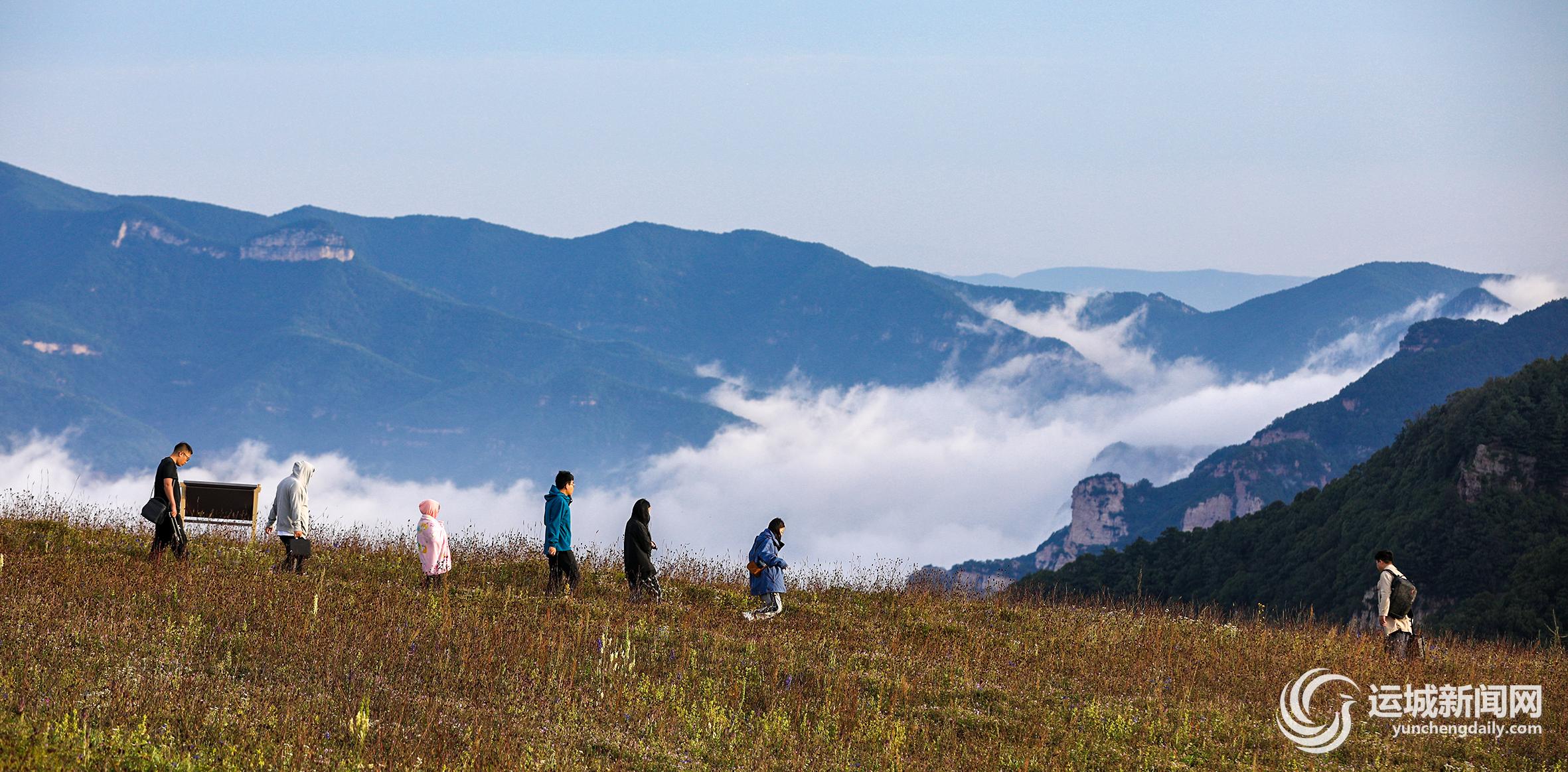 近日,历山风景区受地理和天气的影响,频繁出现壮美的云海景观,舜王坪亚高山草甸上绚丽的花海与云海交相辉映,构成一幅大自然美丽画卷,吸引众多游客前来观赏游玩。