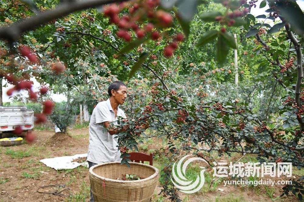 8月17日,闻喜县阳隅镇小张村村民在采摘花椒。