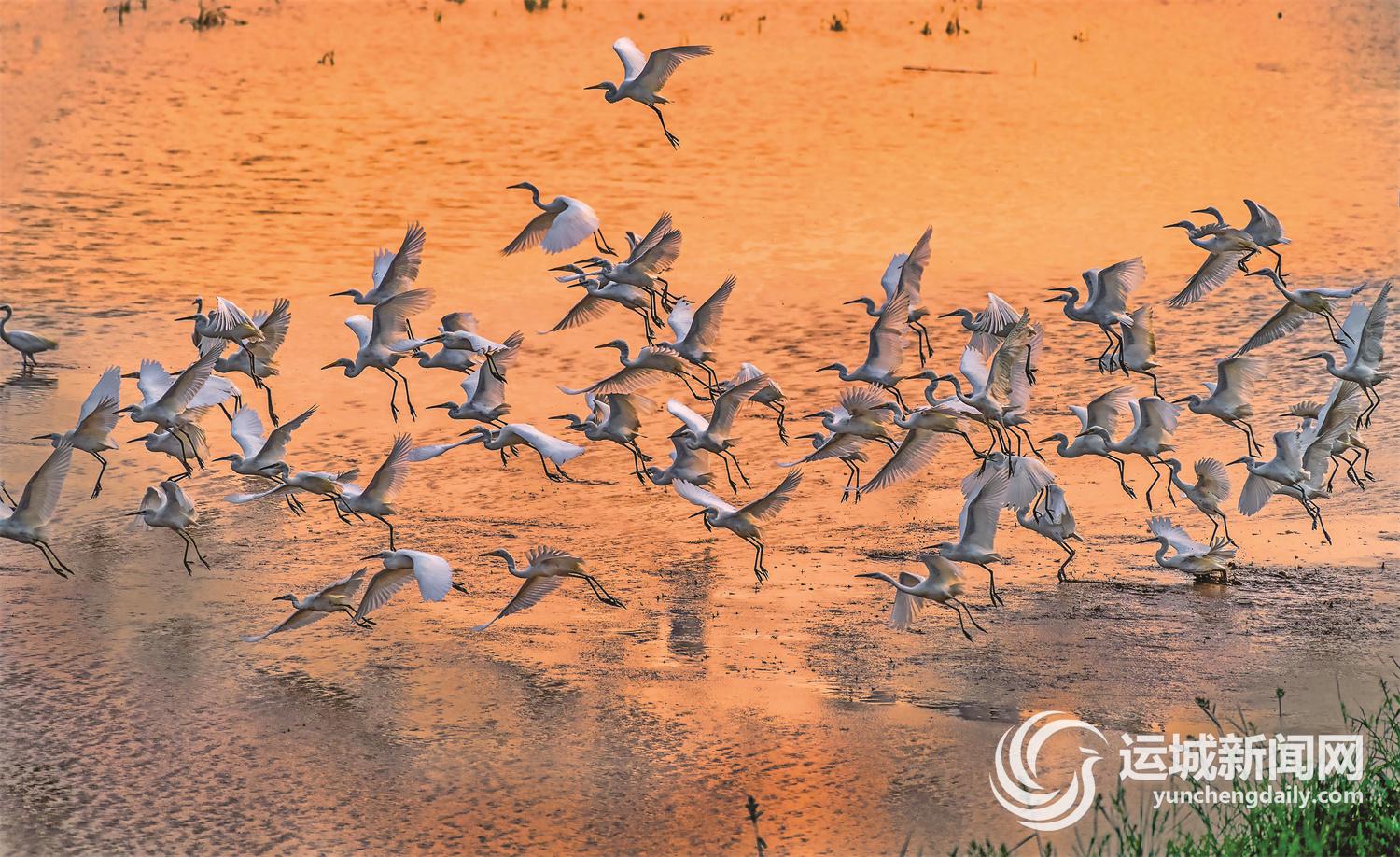 ▲8月16日,一群白鹭在平陆黄河湿地上空翩翩飞舞。 初秋时节,数千只白鹭聚集在平陆黄河湿地,或觅食、或嬉戏、或飞翔,成为一道亮丽的风景。近年来,我市不断加大黄河流域生态保护力度,通过搭建隔离网、清除障碍物、悬挂警示牌等措施,给鸟儿提供安全的栖息环境。如今黄河湿地已成为各类候鸟栖息的乐园。记者 薛俊 摄