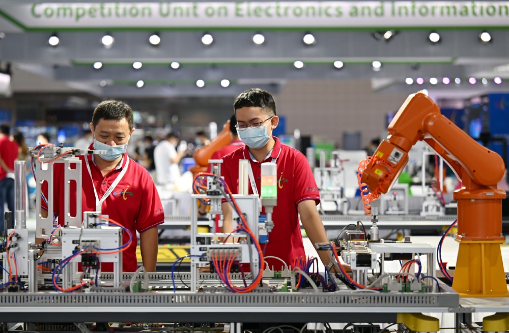 8月19日,在国家会展中心(天津),首届世界职业院校技能大赛的参赛选手在操作机械设备。 当日,首届世界职业院校技能大赛在国家会展中心(天津)开幕,并进行了装备制造、能源动力与材料、交通运输等多个赛项单元的展演。 据了解,本届大赛作为首届世界职业技术教育发展大会的重要组成部分,吸引了来自100多个国家和地区的千余名师生参赛。新华社记者 李然 摄