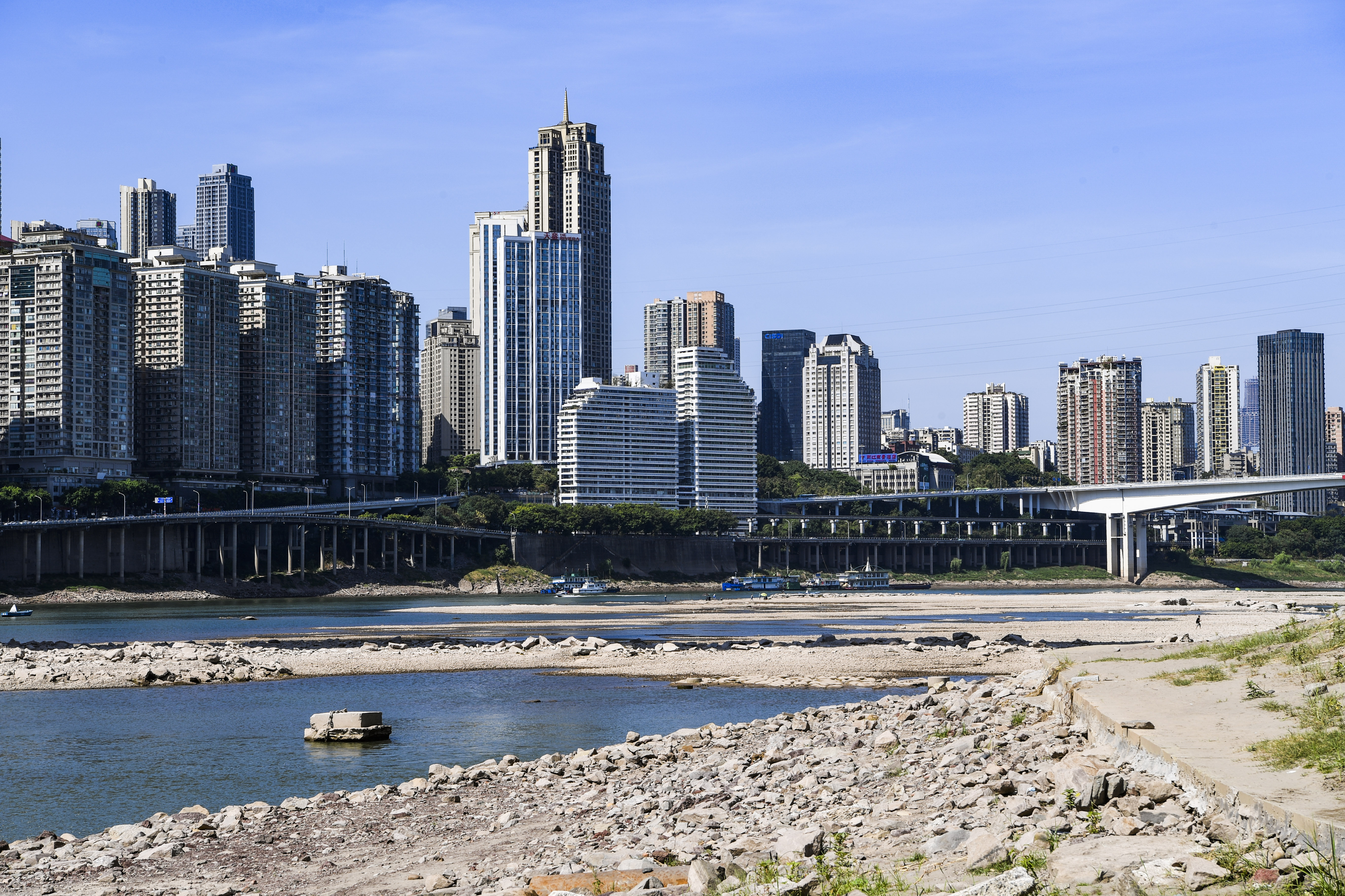 这是8月17日拍摄的重庆嘉陵江黄花园大桥一带景象。